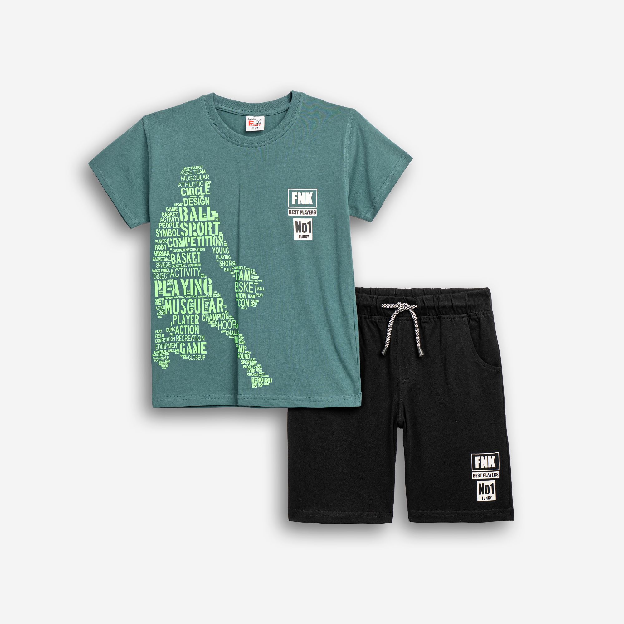 Set T-shirt with printing (FNK best players) and corduroy fleece with printing in color deep lake/black with printing for boys 6-16 years