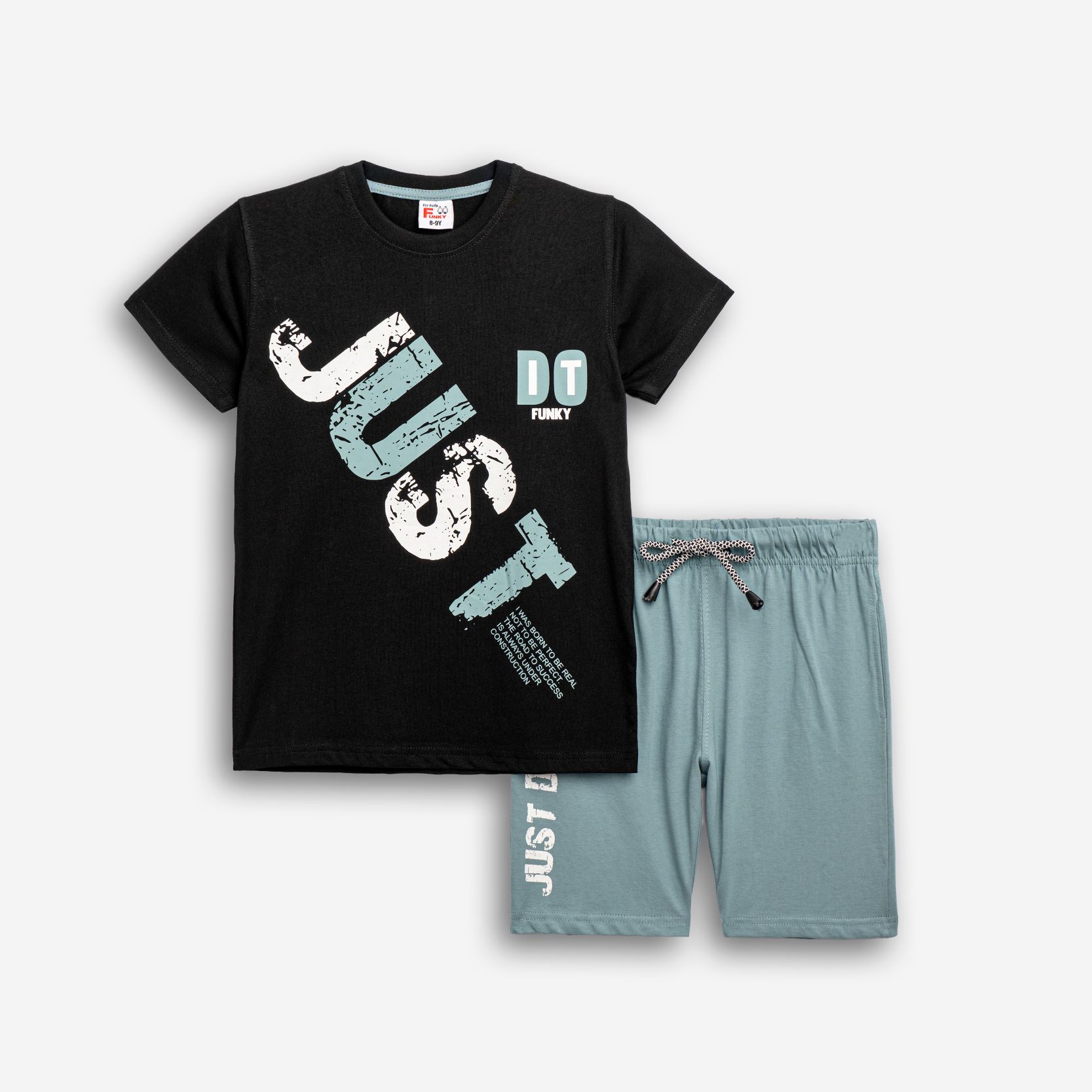 Set T-shirt with printing (just do it) and corduroy with printing in color black/storm blue for boys 6-16 years