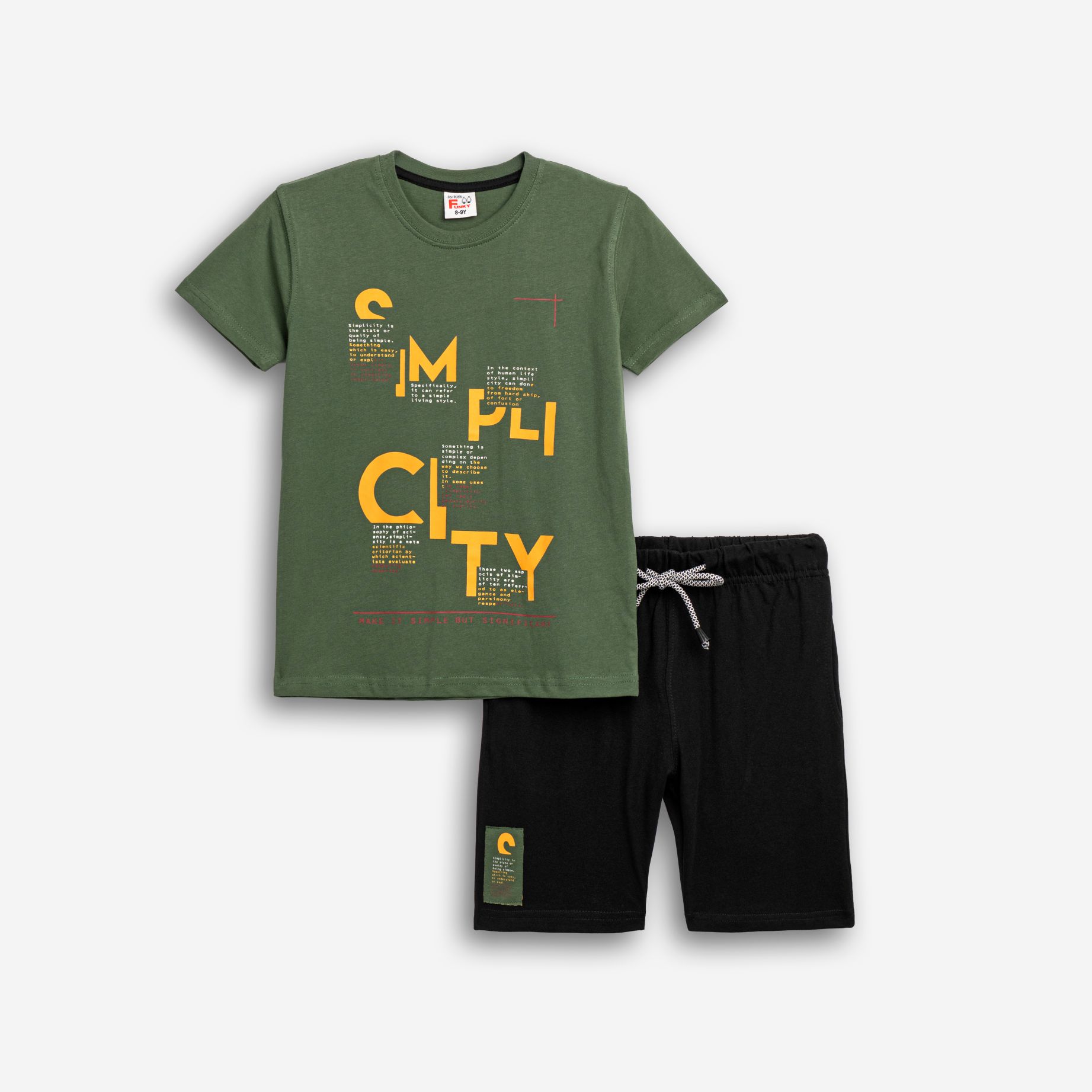 Set T-shirt with printing (simplicity) and corduroy fleece with printing in color oil tree/black with printing for boys 6-16 years