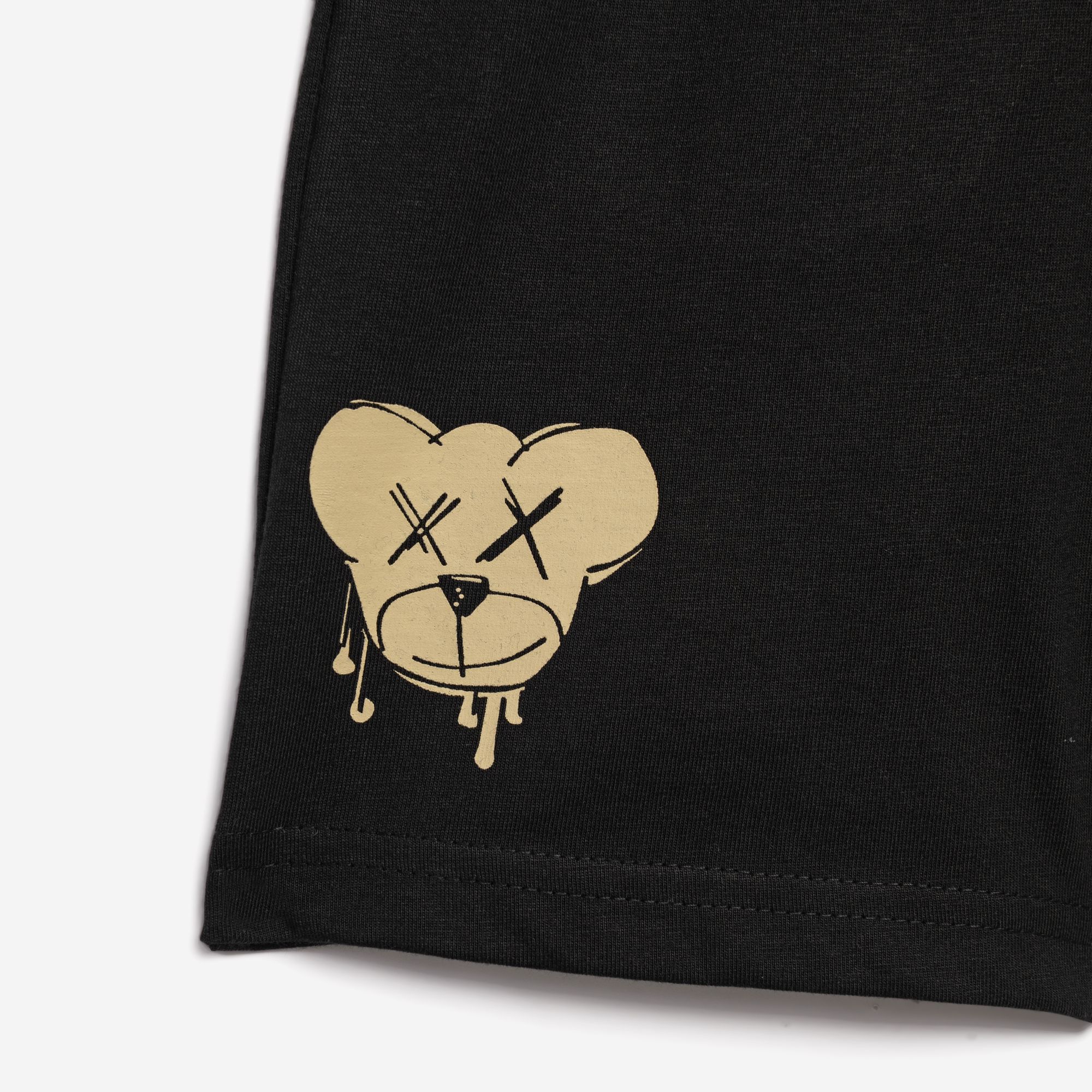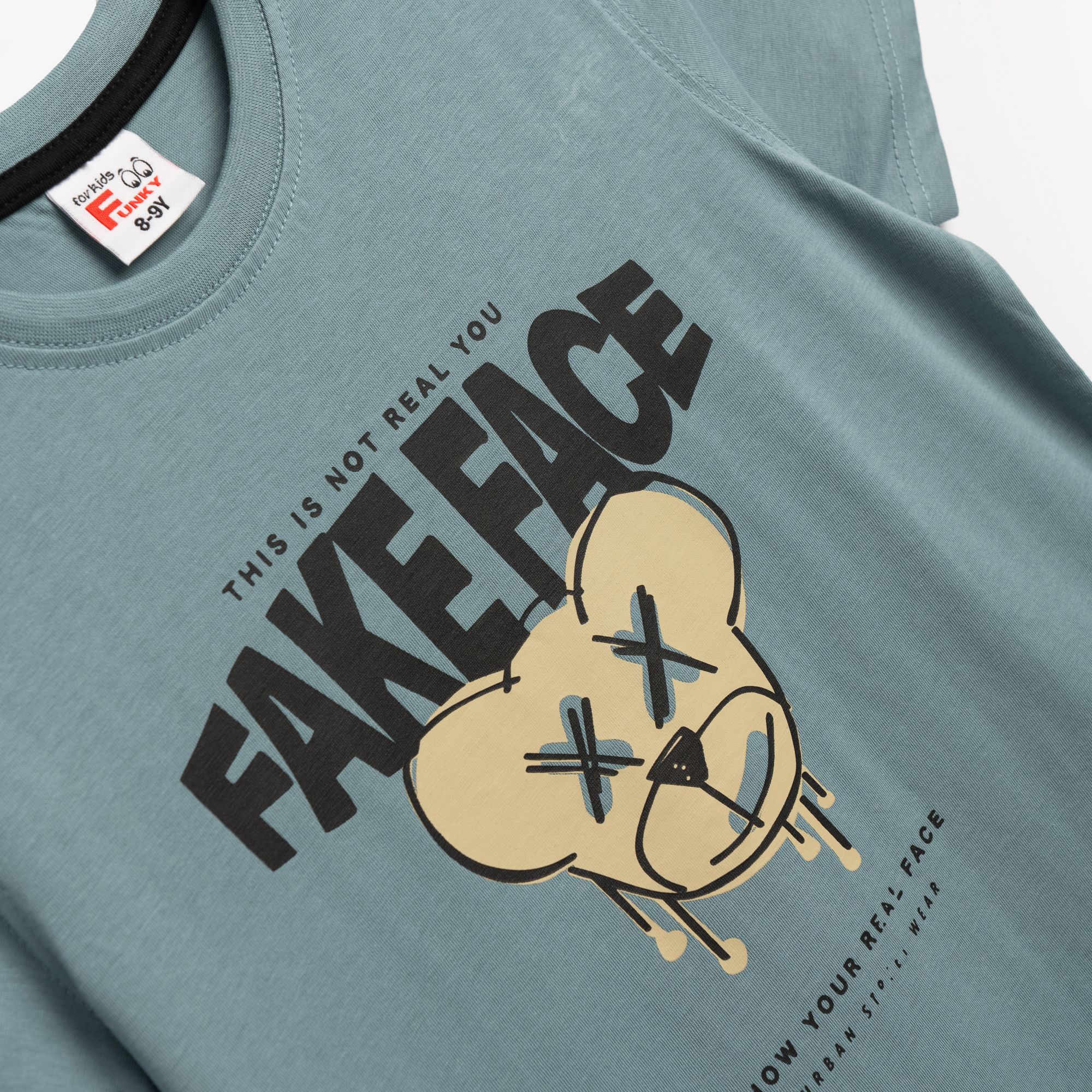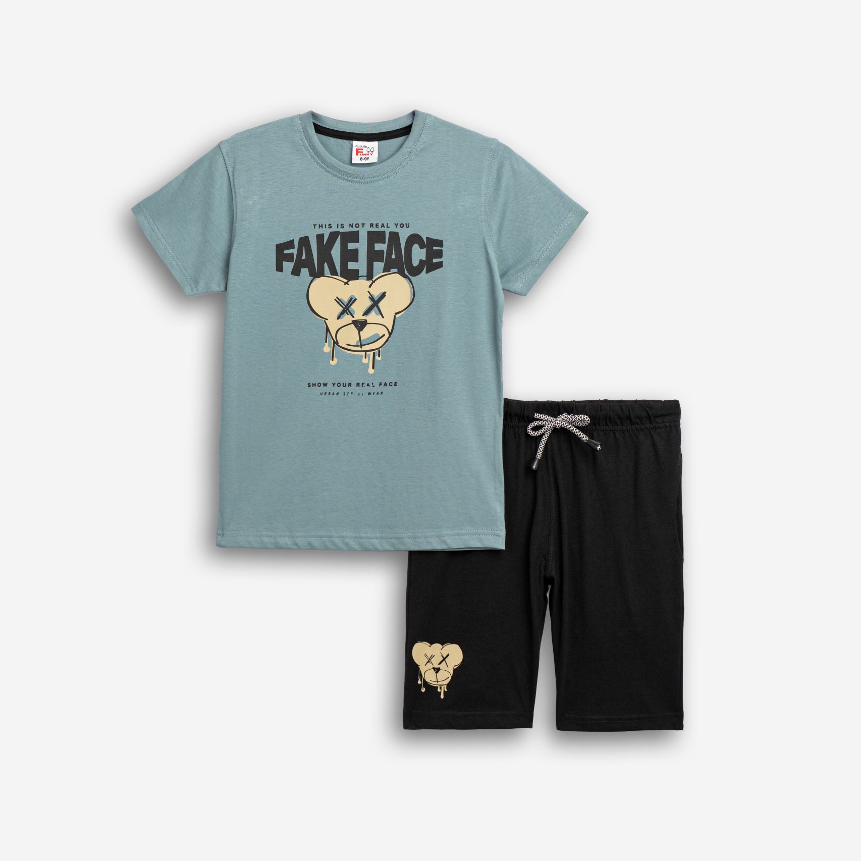 Set T-shirt with printing (fake face) and corduroy fleece with printing in color storm blue/black with printing for boys 6-16 years