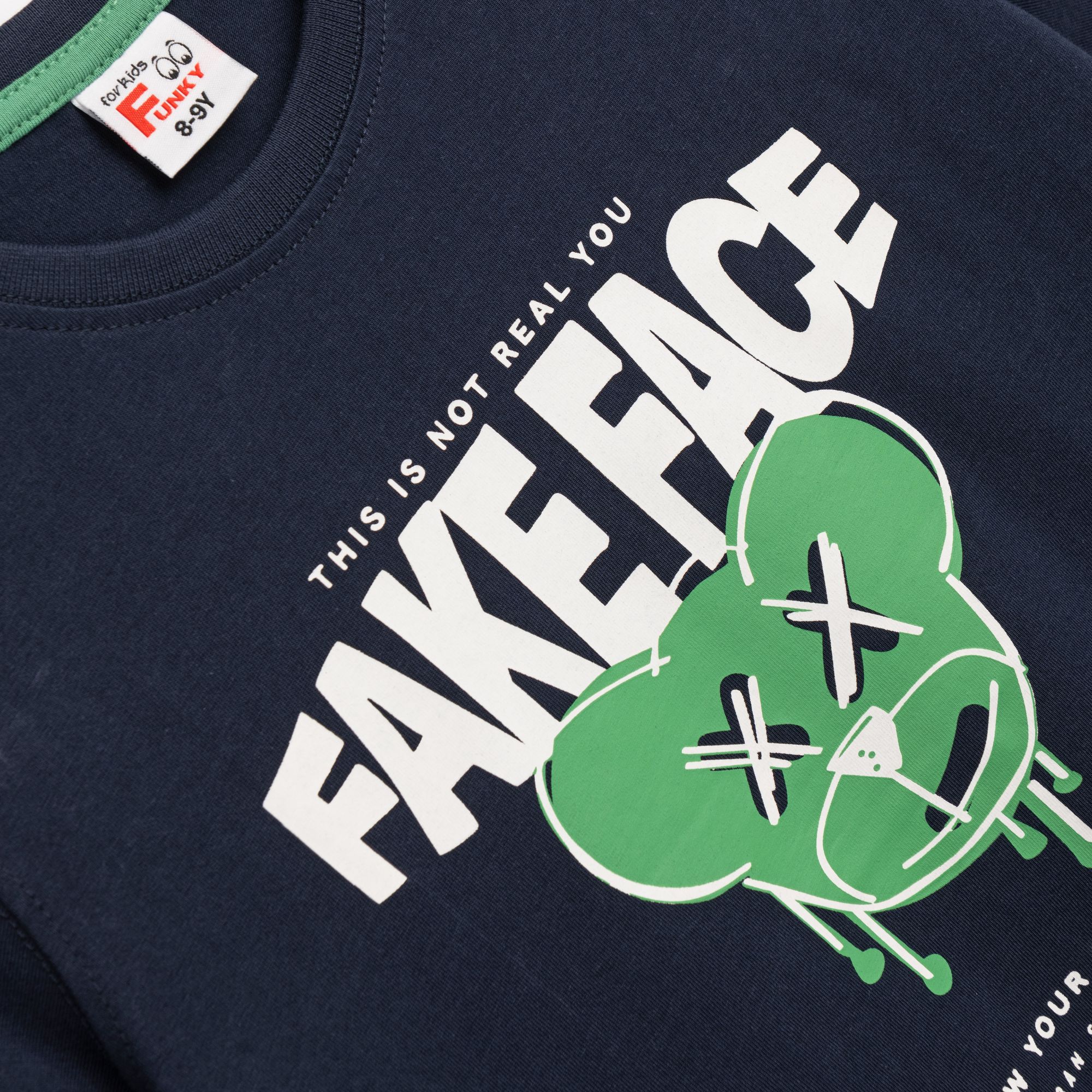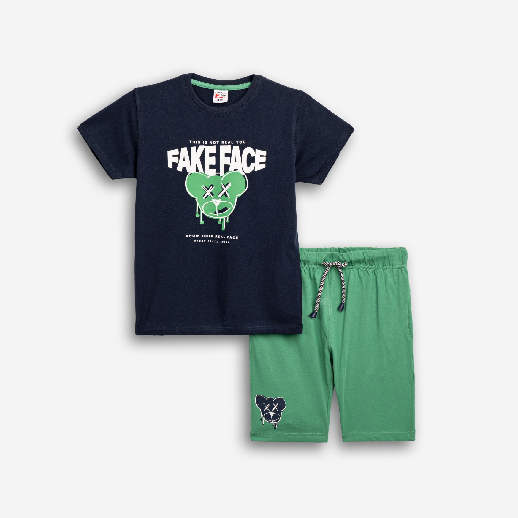 Set T-shirt with printing (fake face) and corduroy fleece with printing in color green blue/leprechaun with printing for boys 6-16 years