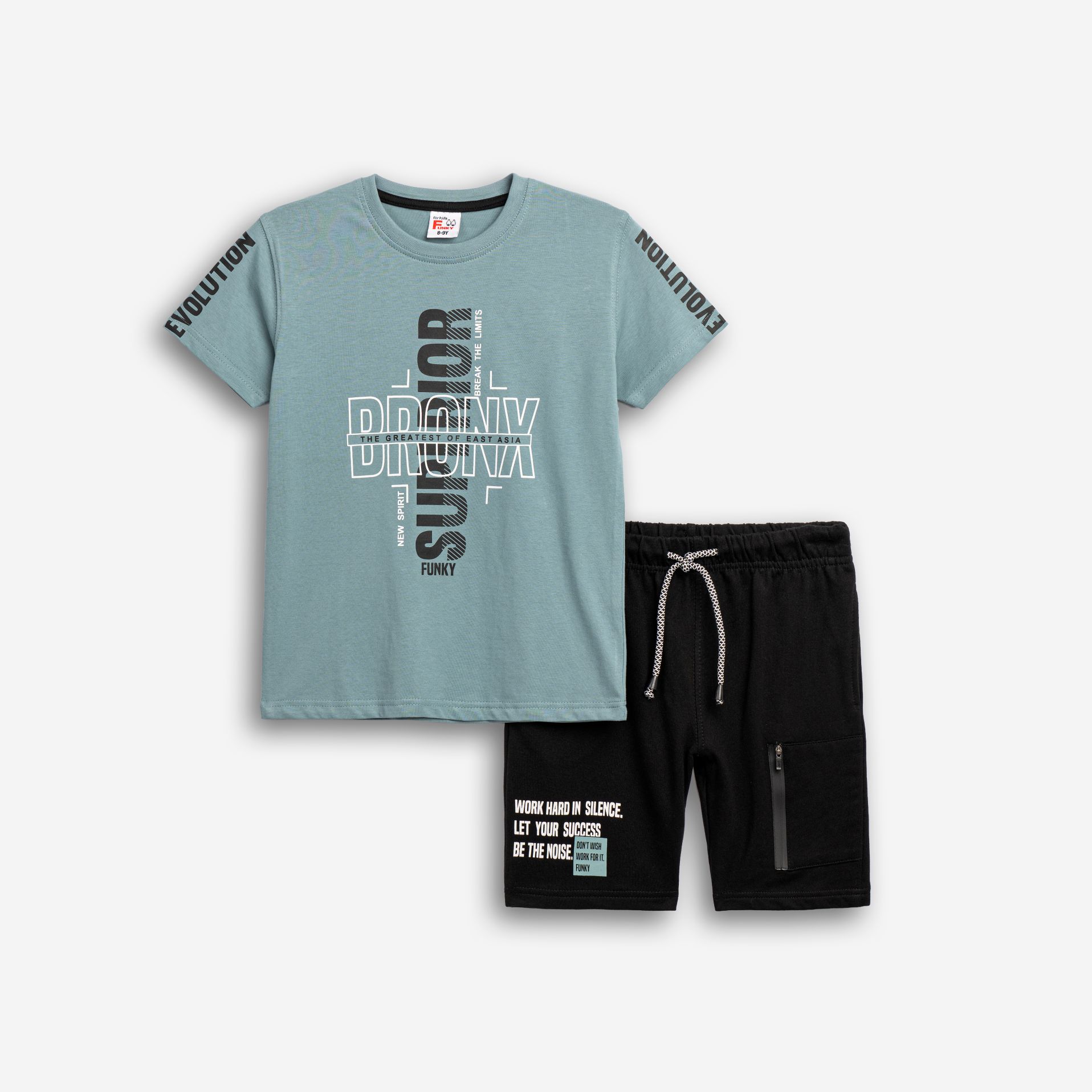 Set T-shirt with printing (Bronx superior) and corduroy fleece with printing in color storm blue/black for boys 6-16 years
