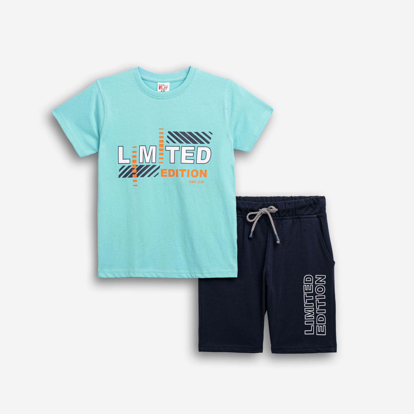 Set T-shirt with printing (limited edition) and corduroy fleece with printing in color turquoise/blue for boys 6-16 years
