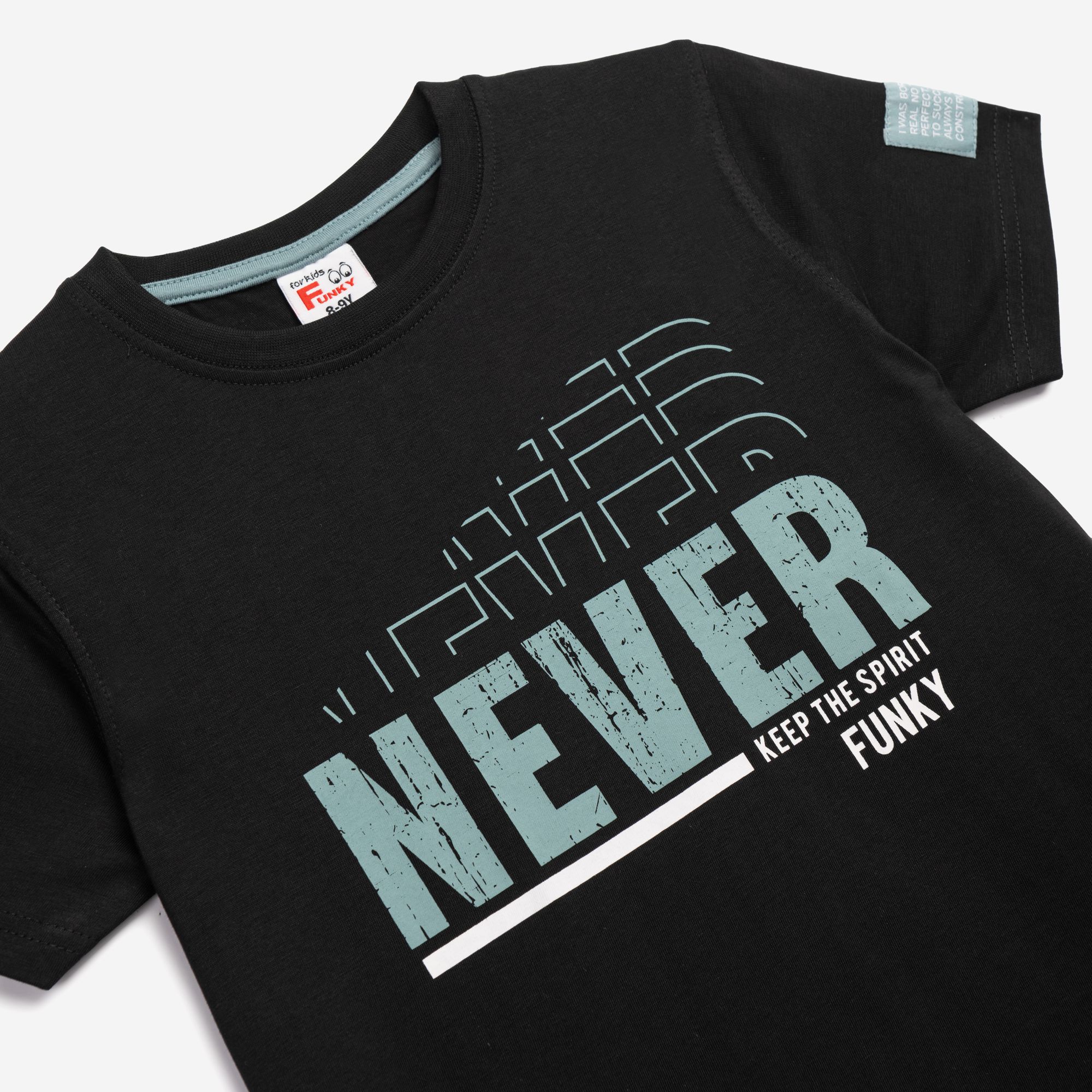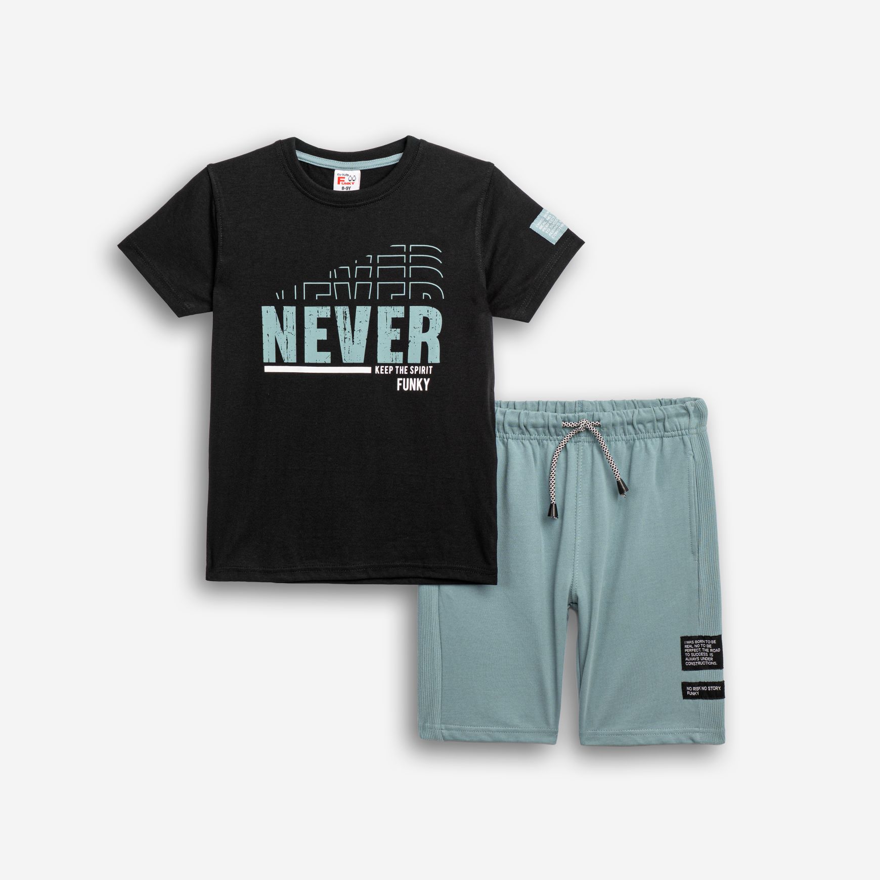 Set T-shirt with printing (never) and corduroy fleece with printing in color black/storm blue for boys 6-16 years