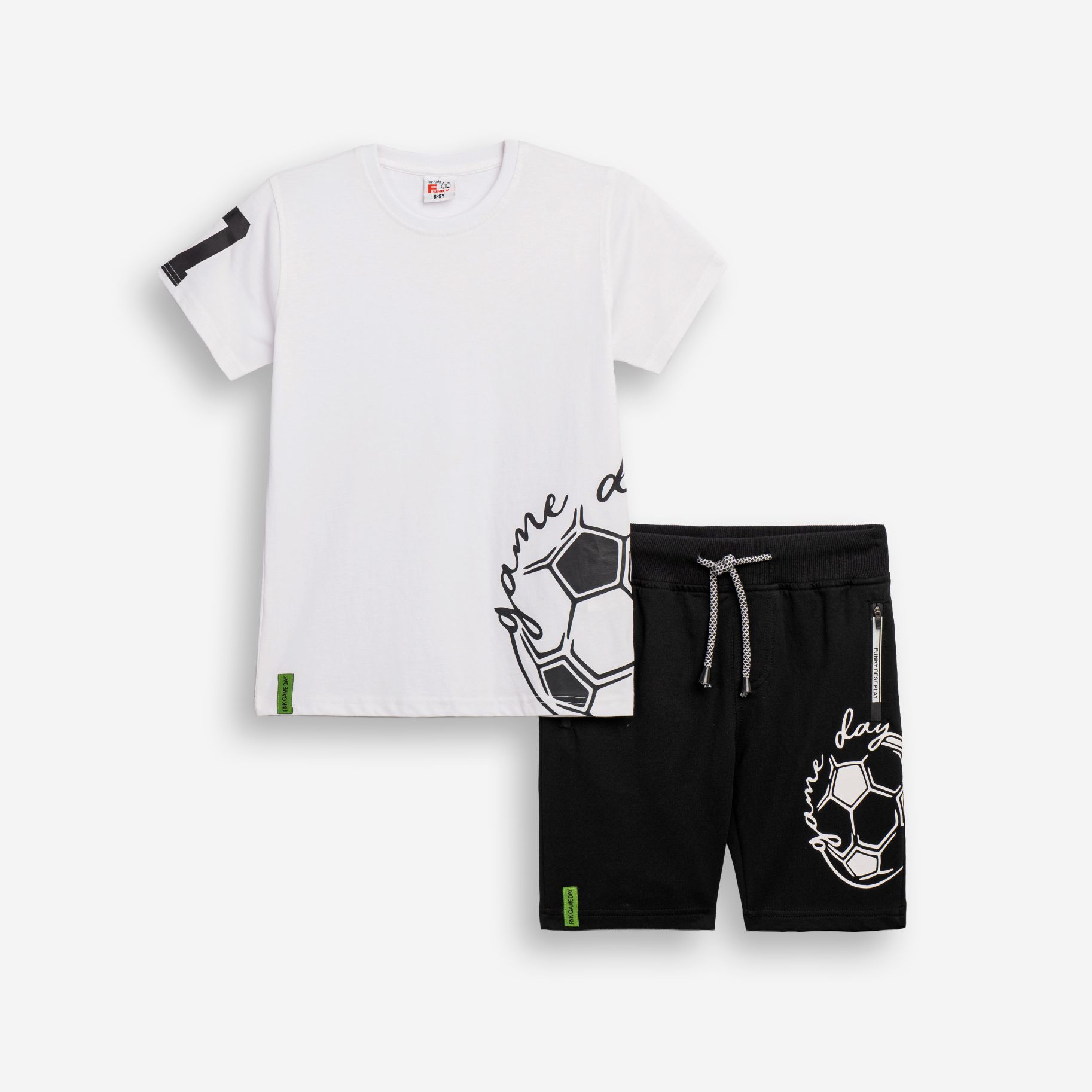 Set T-shirt with printing (game day) and corduroy fleece with printing in color white/black for boys 6-16 years
