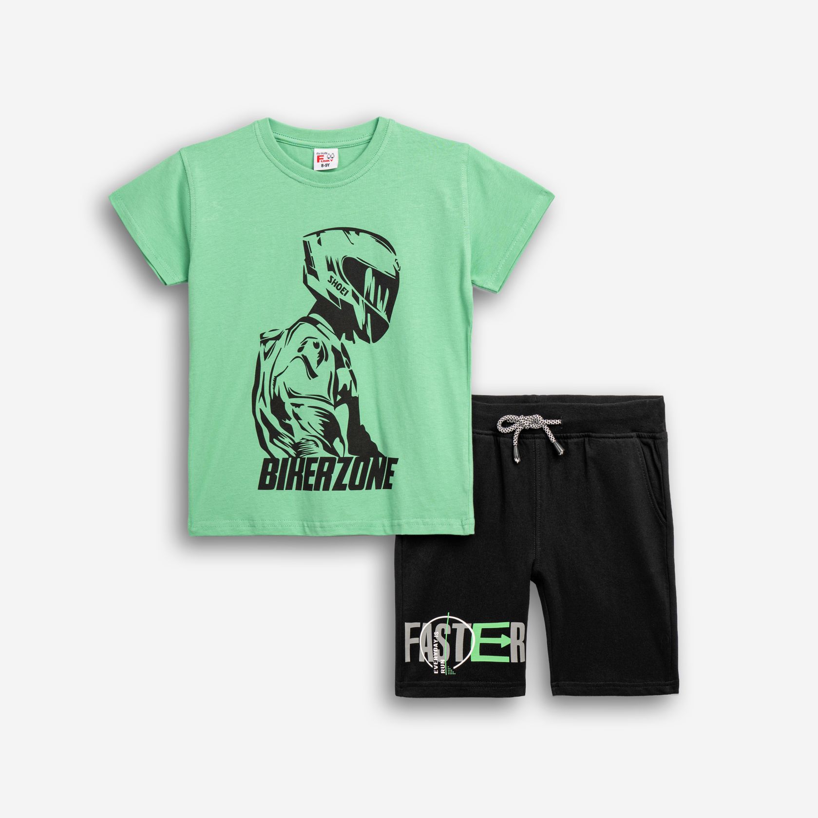 Set T-shirt with printing (bikerzone) and corduroy fleece with printing in color green parot/black with printing for boys 6-16 years