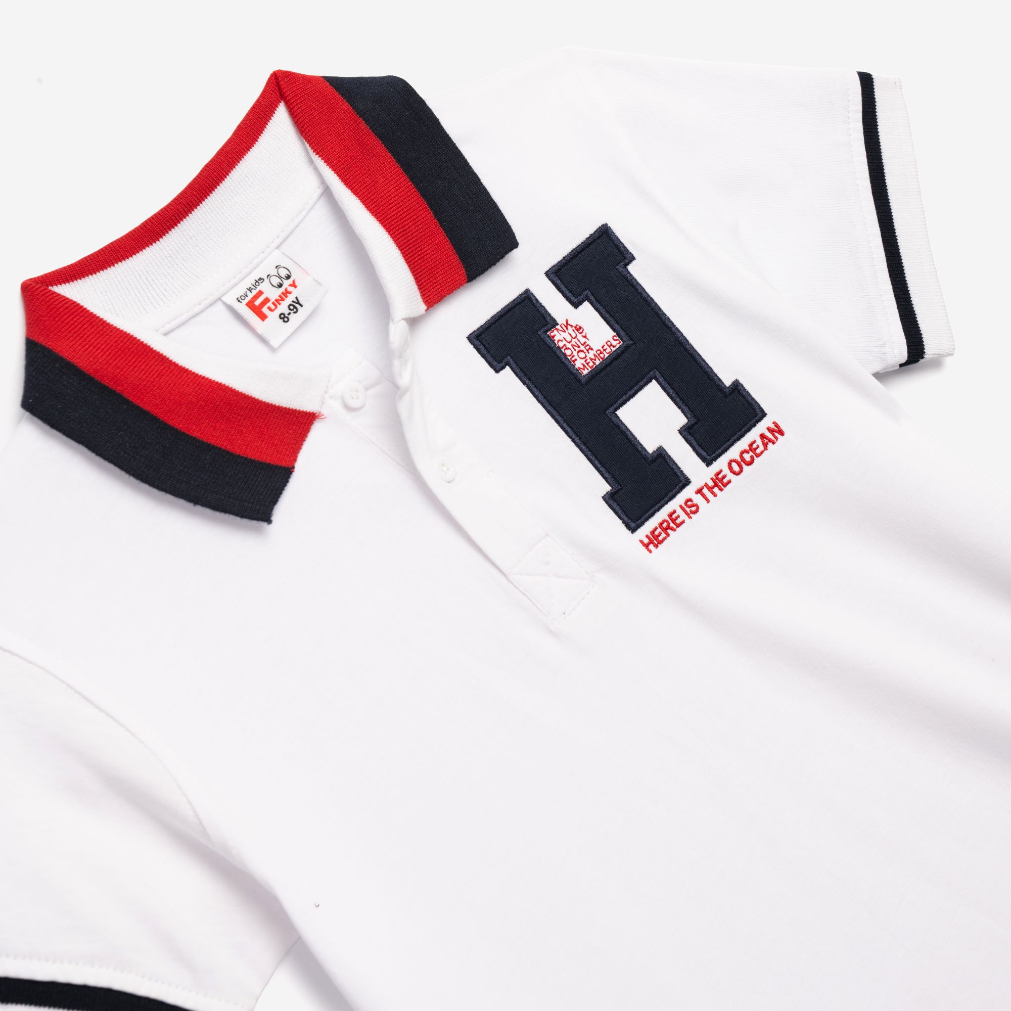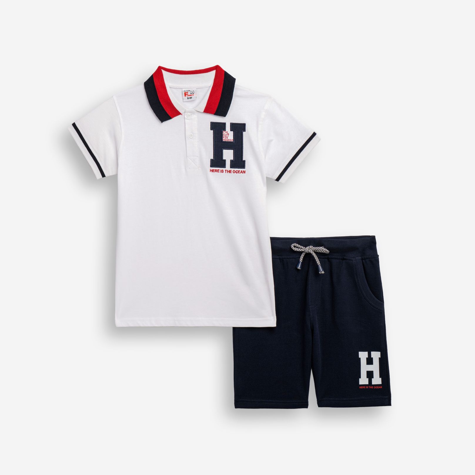 Set T-shirt polo with printing (H) and corduroy pique with printing in color white/blue for boys 6-16 years