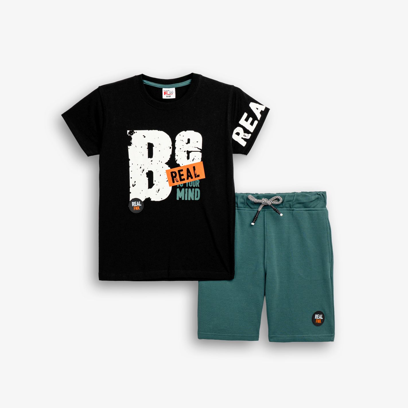 Set T-shirt with printing (be real) and corduroy pique with printing in color black/deep lake for boys 6-16 years