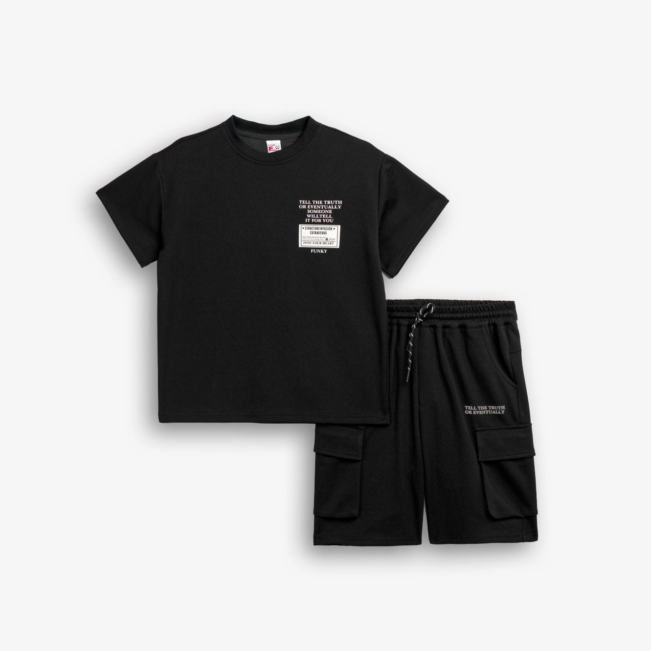 Set T-shirt with printing and corduroy with printing in color black/black for boys 6-16 years