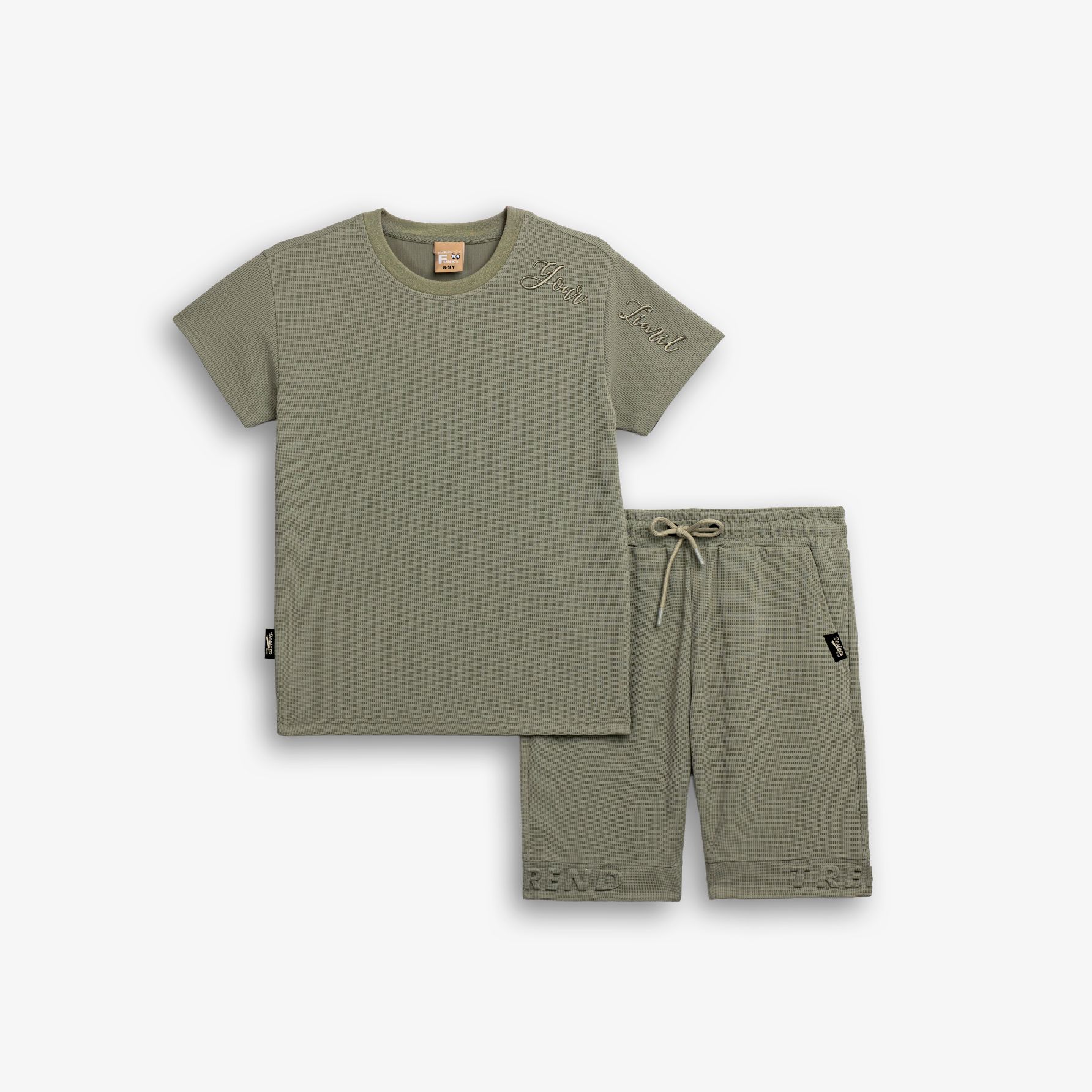 Set T-shirt with printing (your limit) and corduroy in color light khaki/light khaki for boys 6-16 years