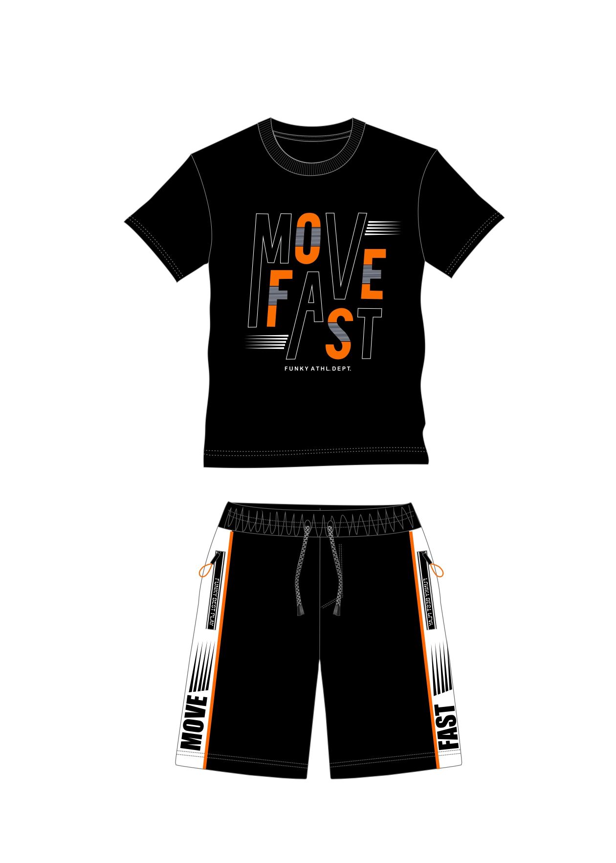 Set T-shirt with printing (move fast) and corduroy fleece with printing in color black/black-white for boys 6-16 years