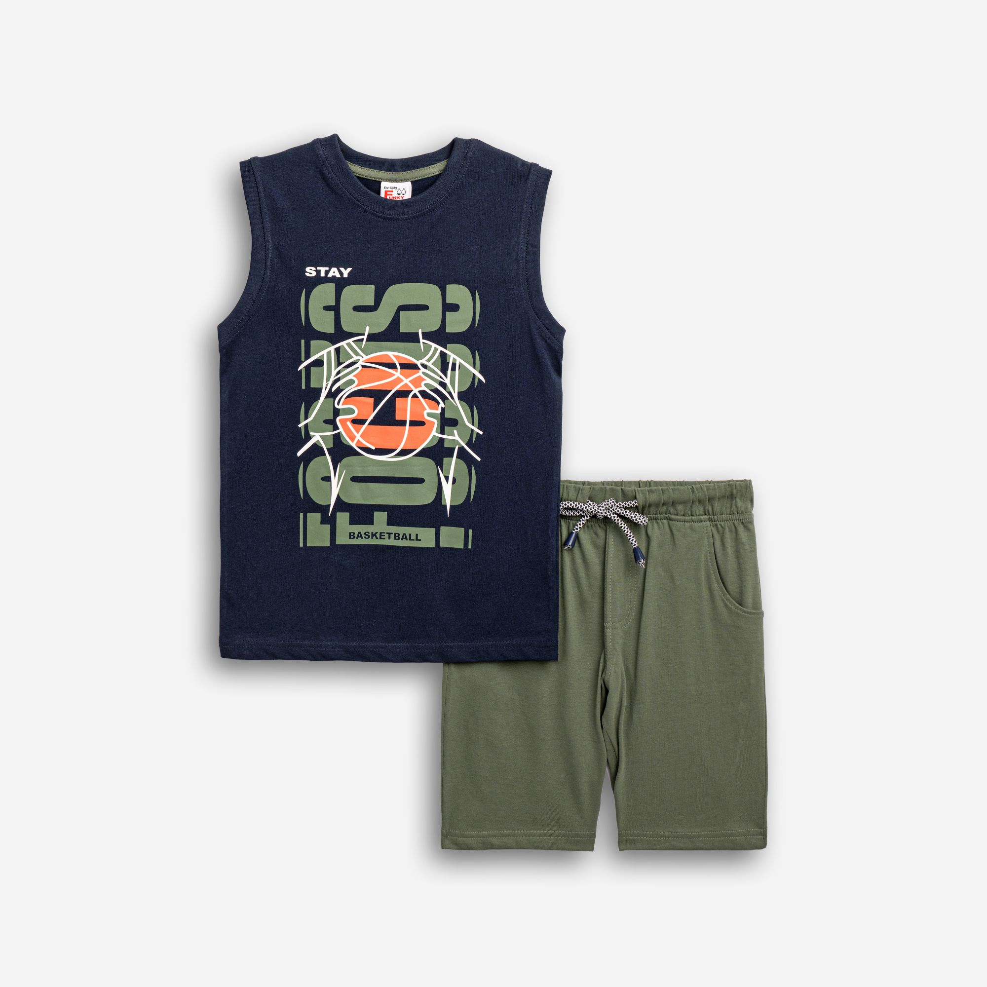 Set shirt sleeveless with printing (focus-basketball) and corduroy in color blue/khaki for boys 6-16 years