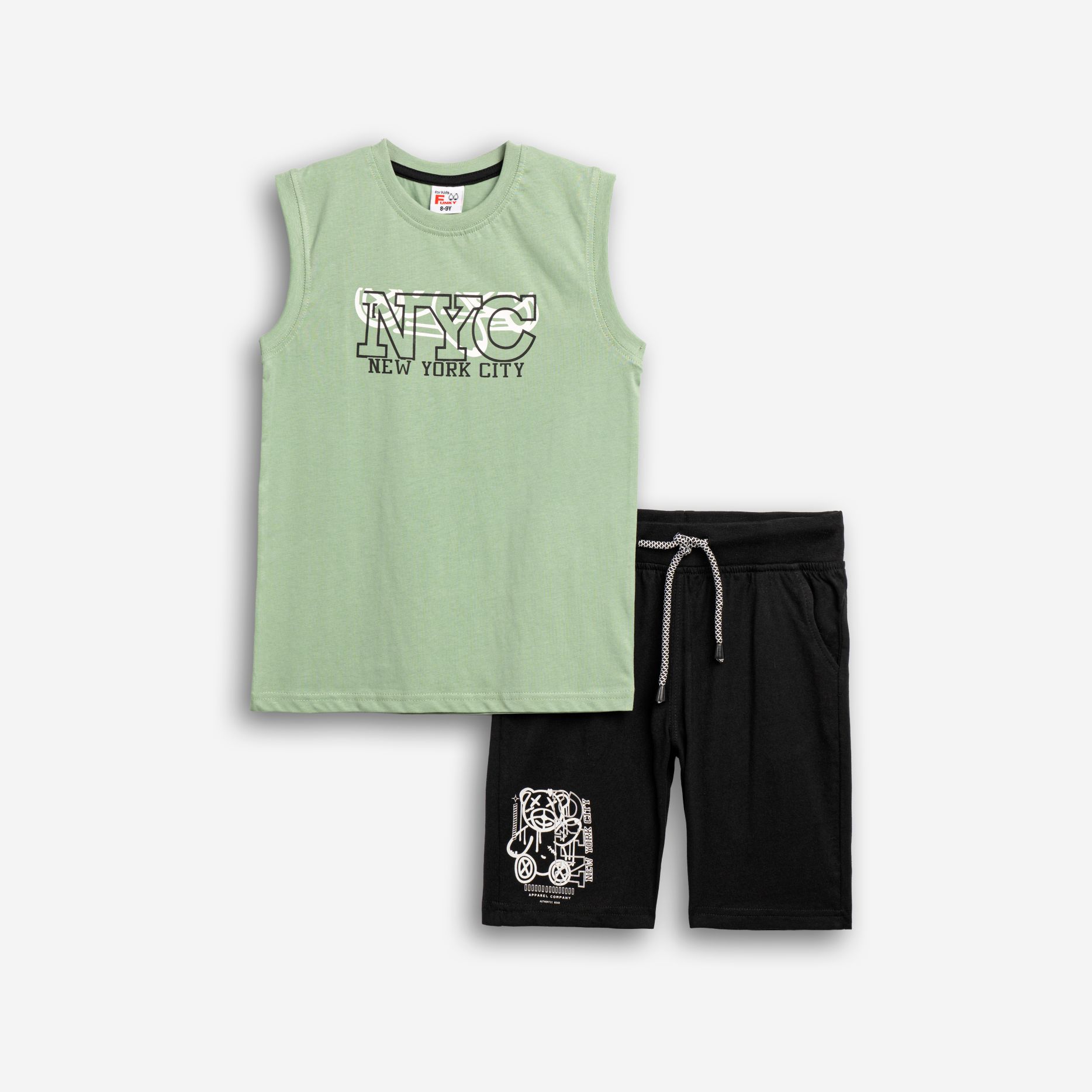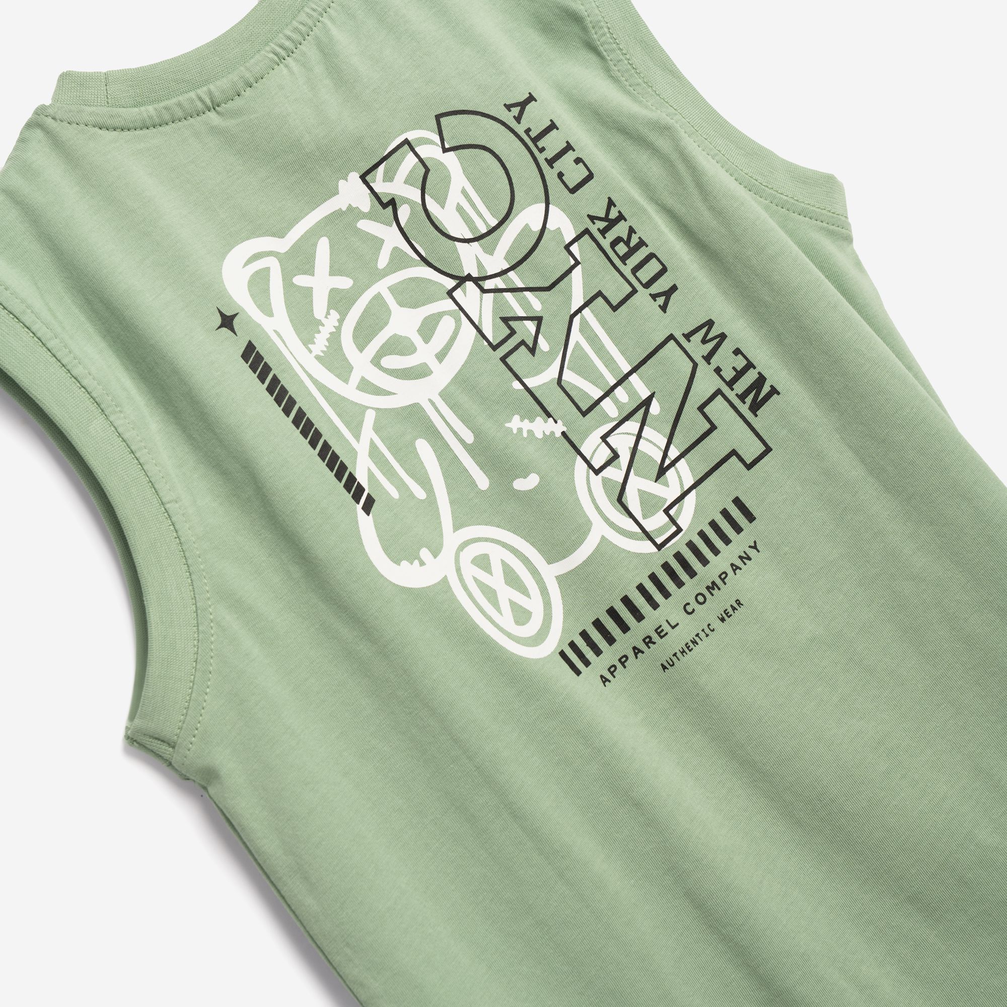 Set shirt sleeveless with printing (NYC-teddy bear) and corduroy with printing in color grass/black for boys 6-16 years