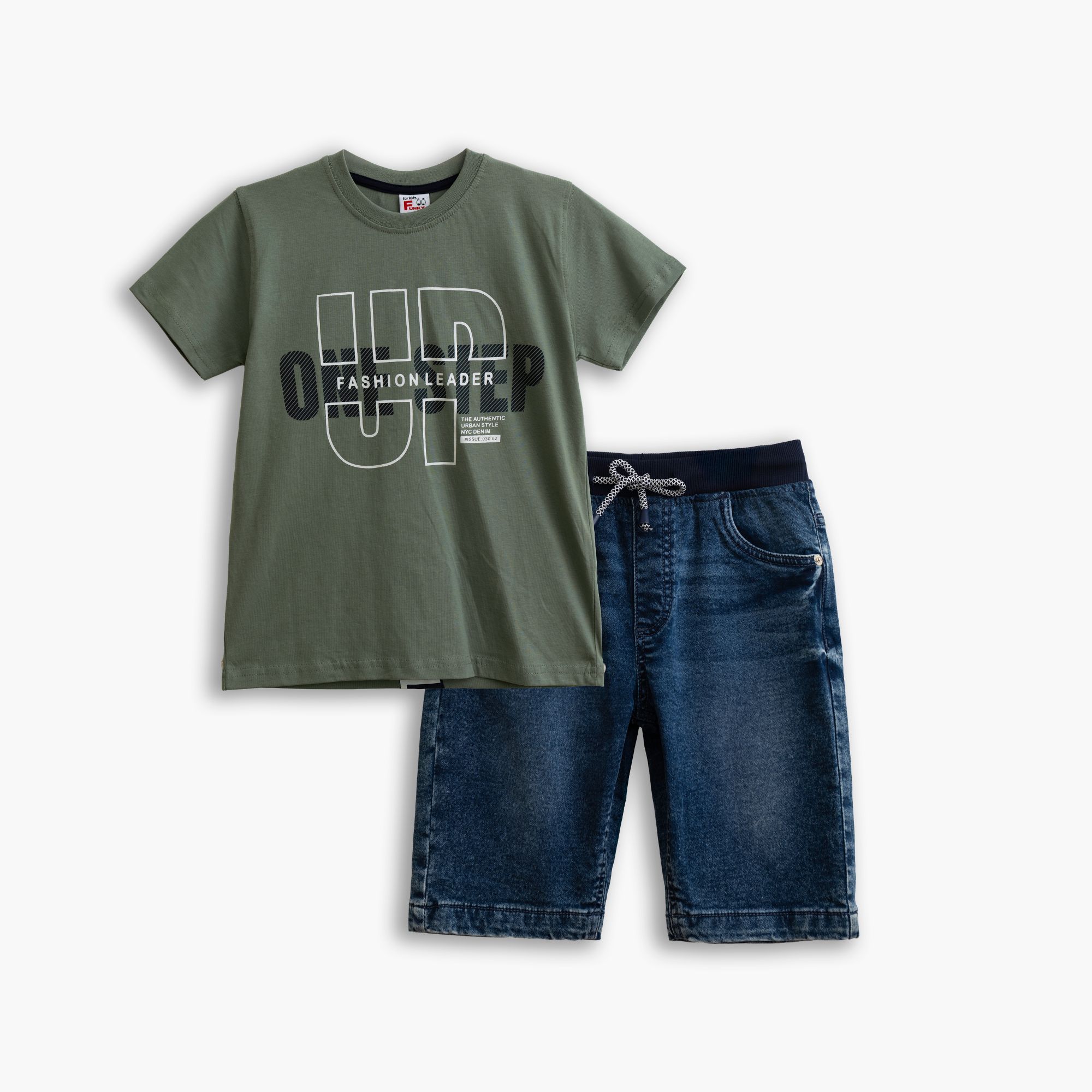 Set shirt with printing (one step) and corduroy fleece jean in color light khaki/blue jean for boys 6-16 years