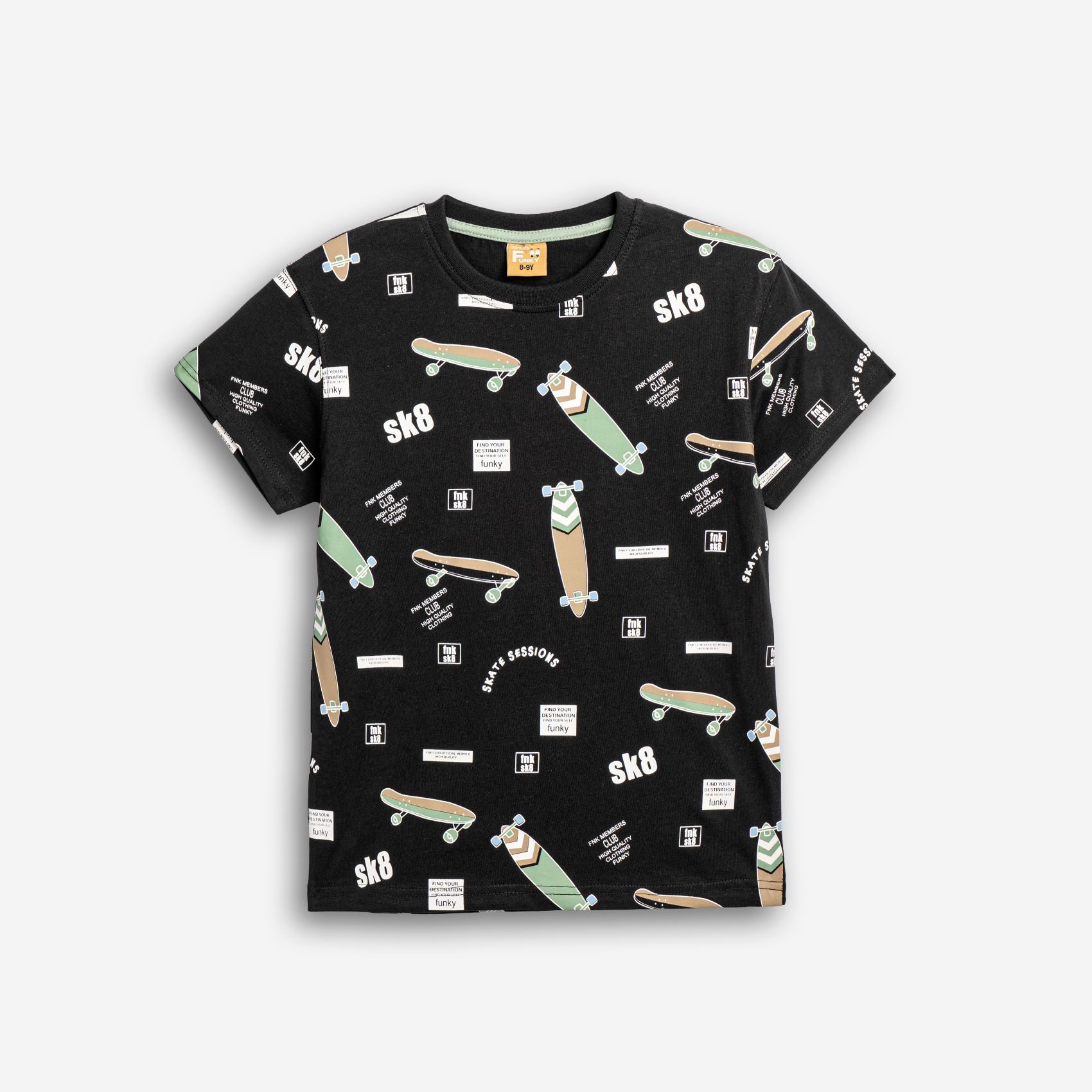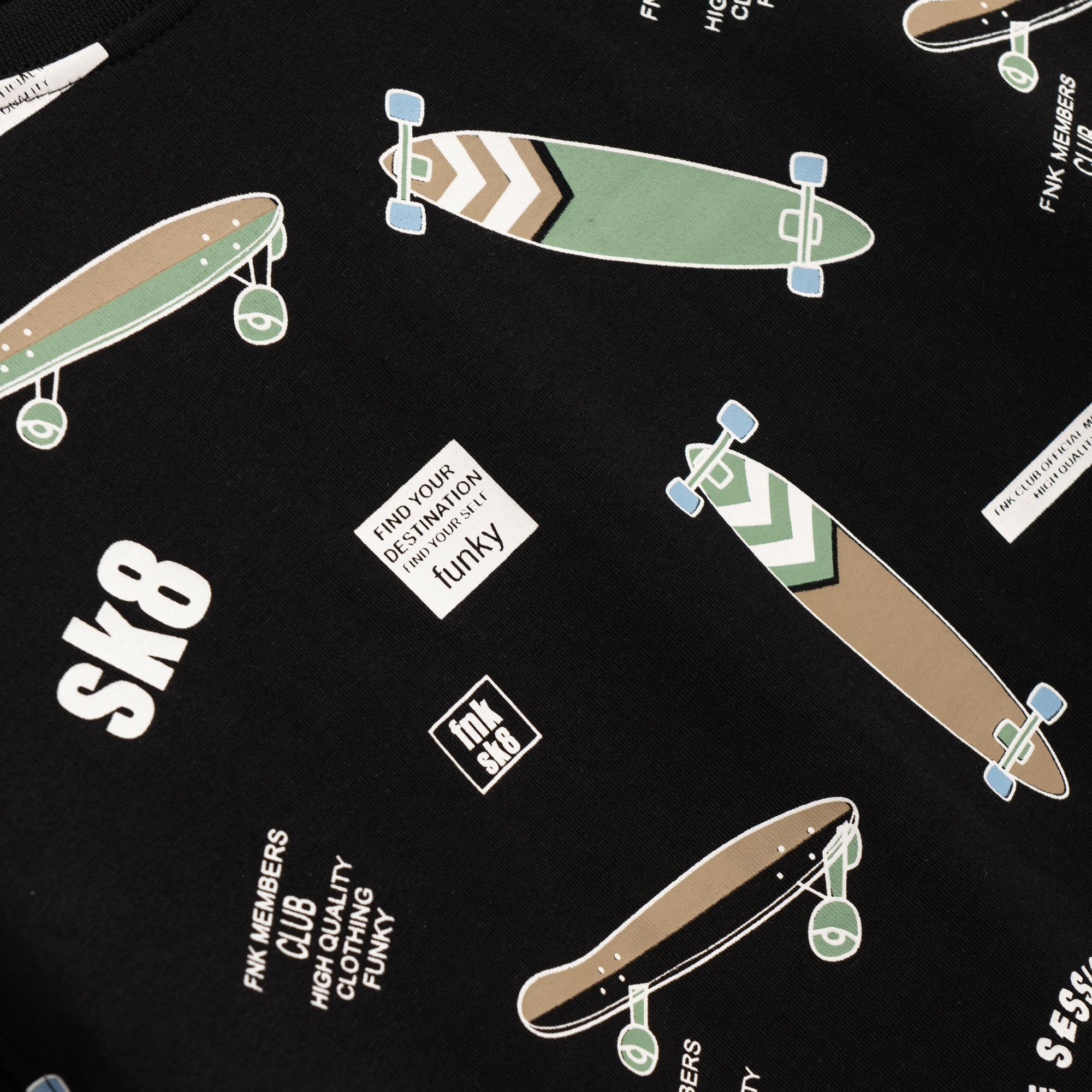 T-shirt jersey with printing (skate sessions) allover in color black for boys 6-16 years
