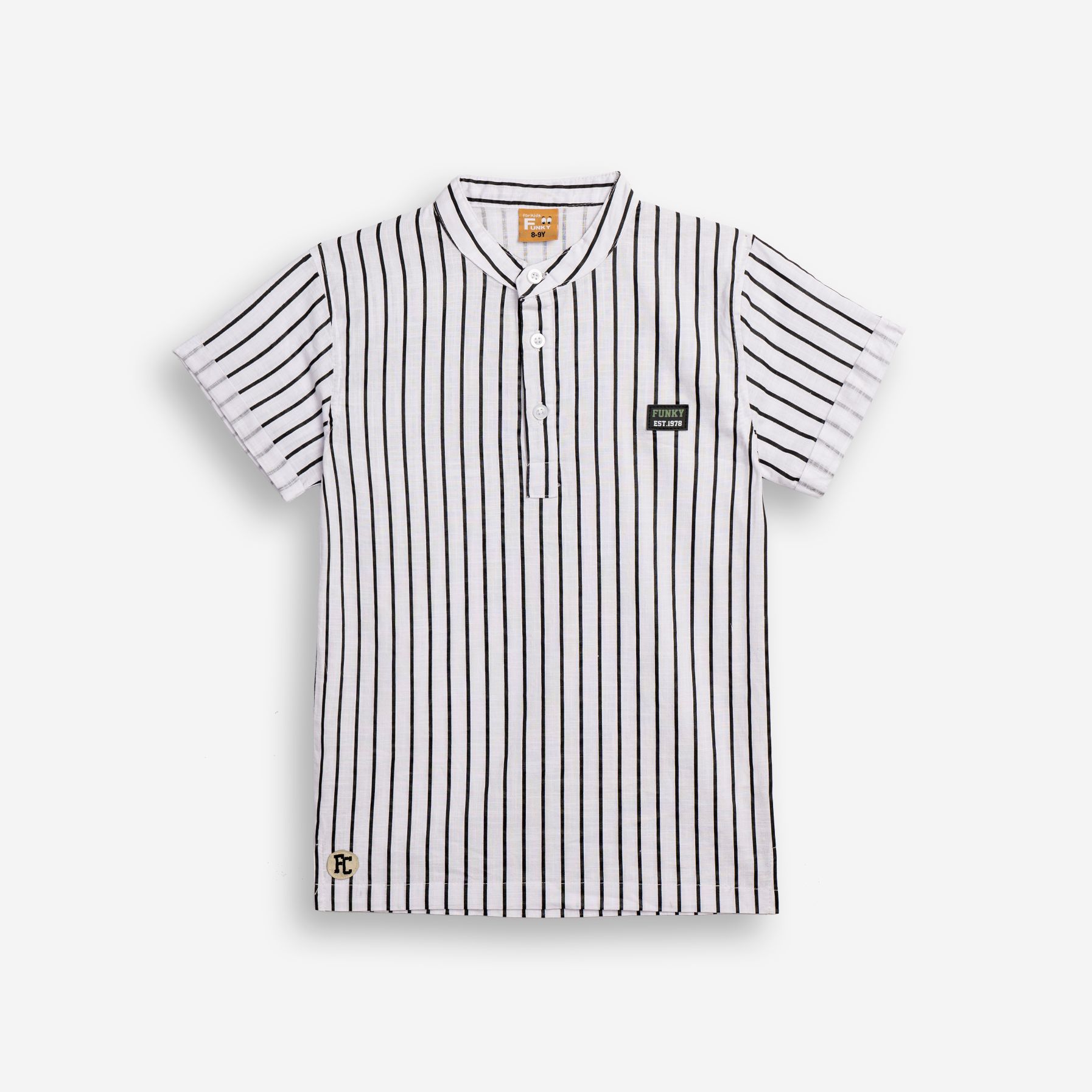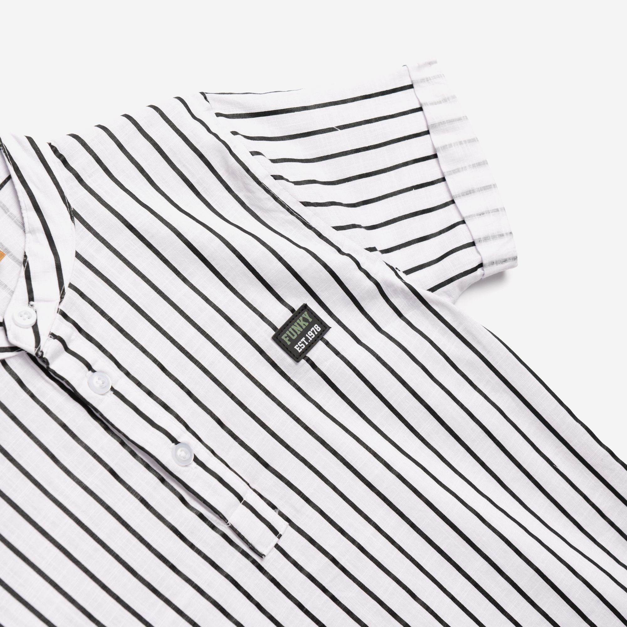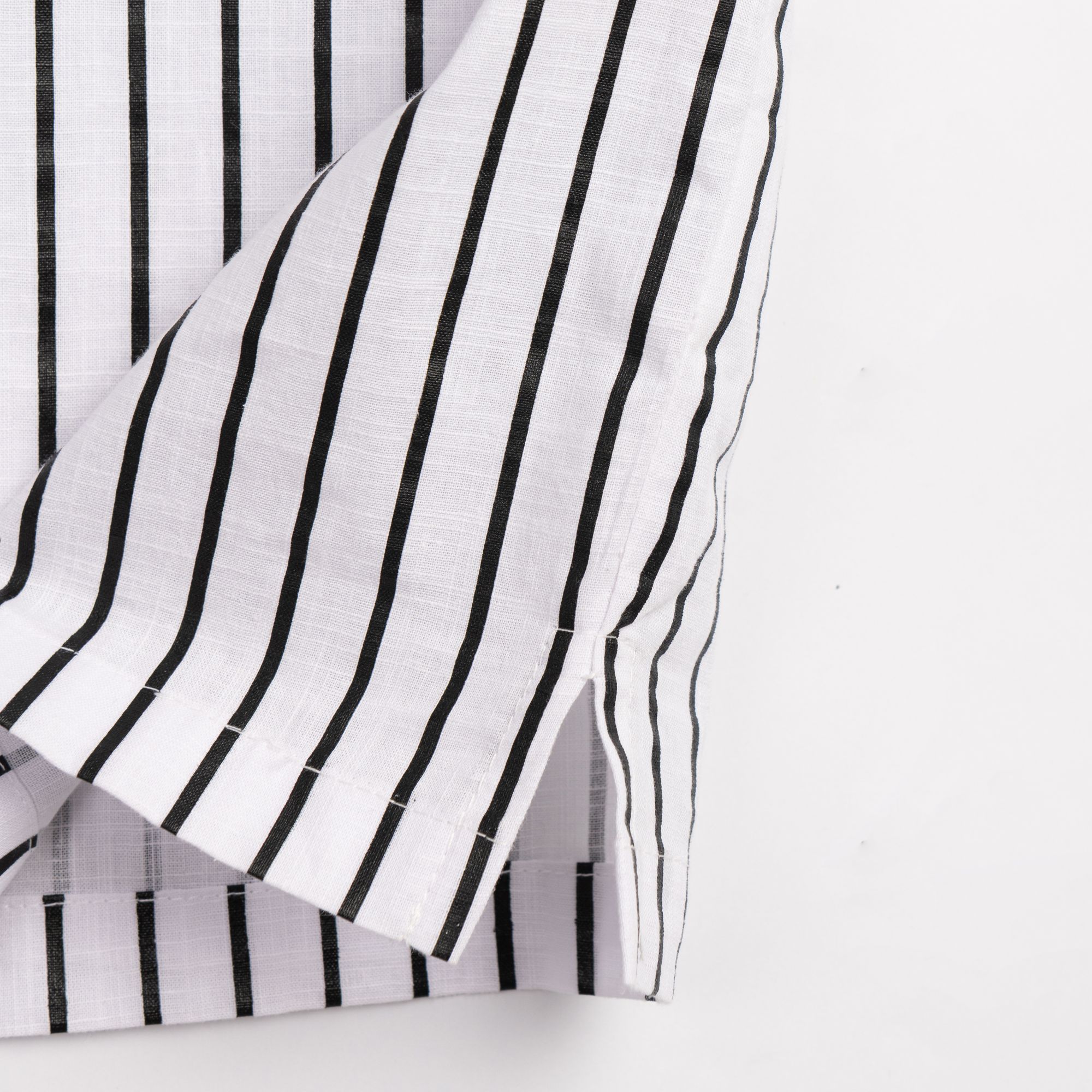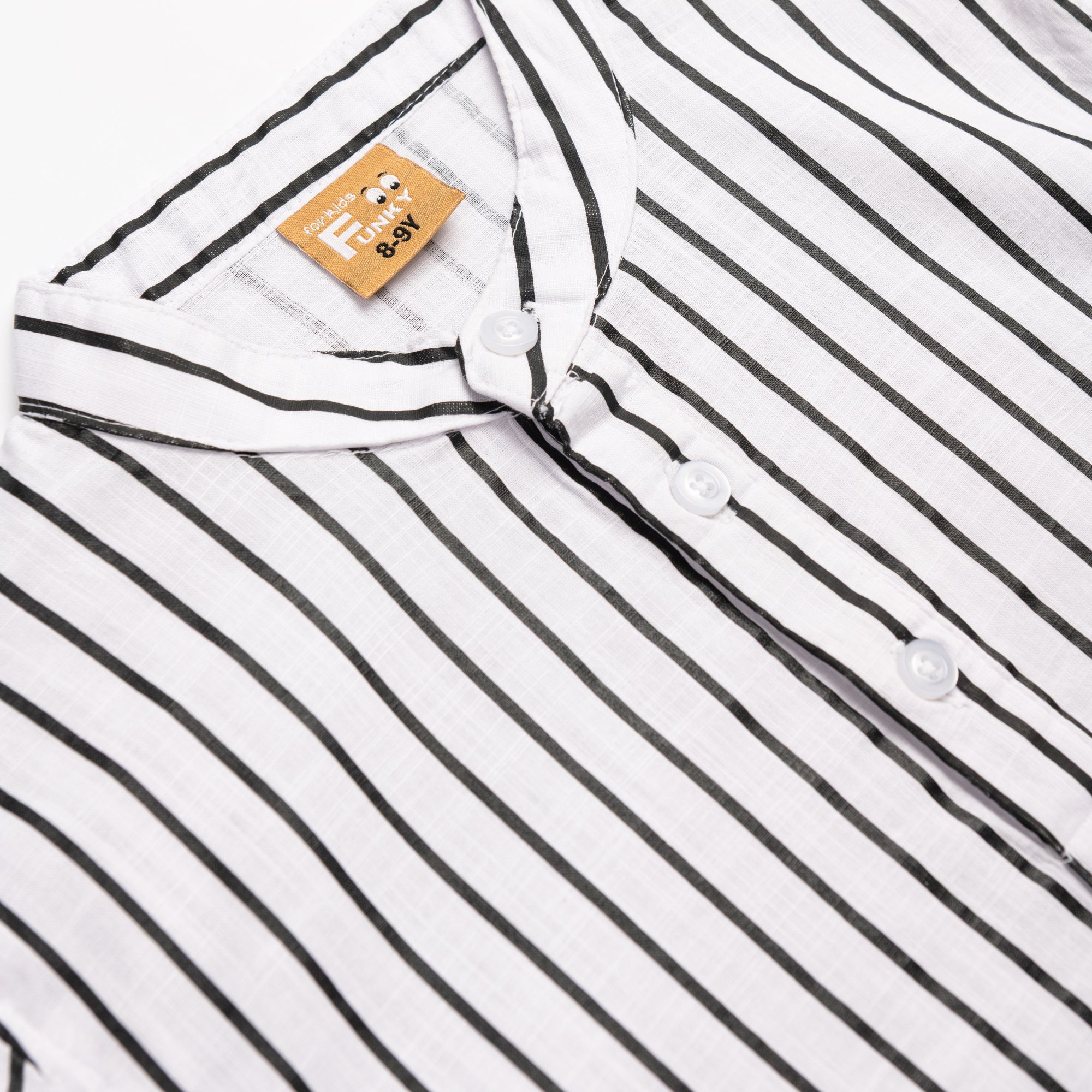 Shirt short-sleeved linen with stripes in color white-black for boys 6-16 years