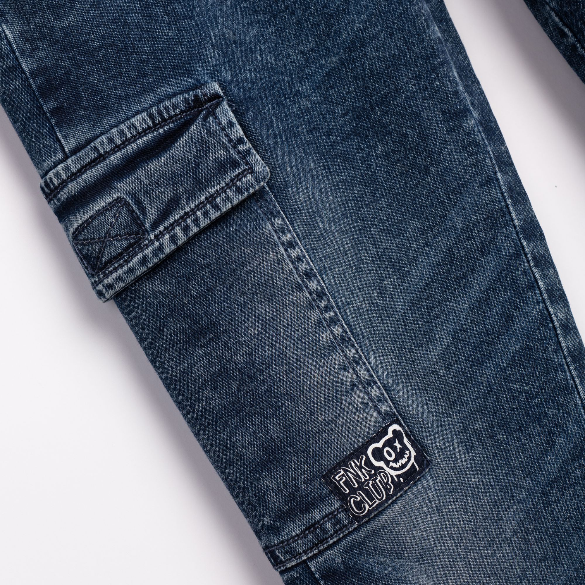 Pants fleece jean cargo in color blue jean for boys 6-16 years
