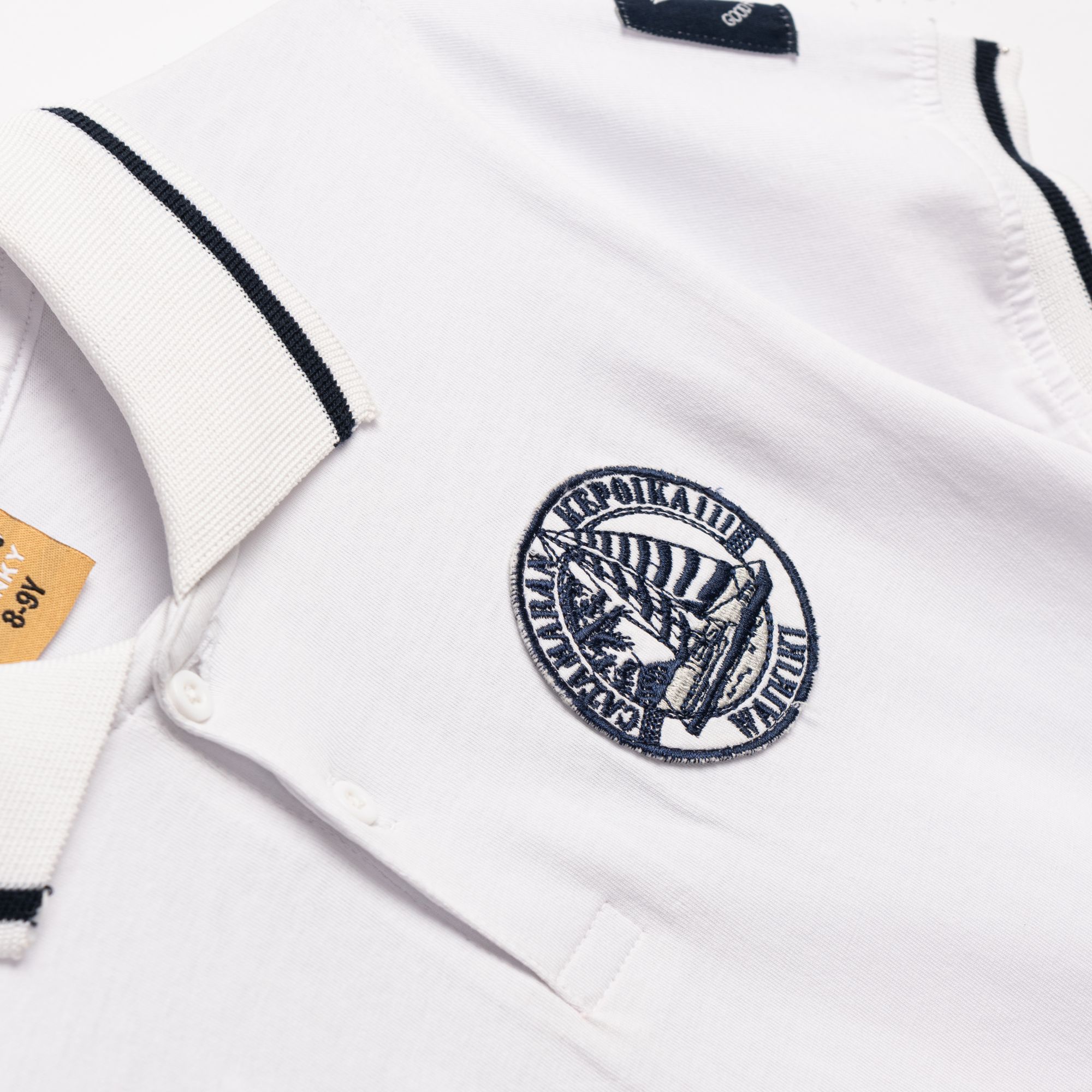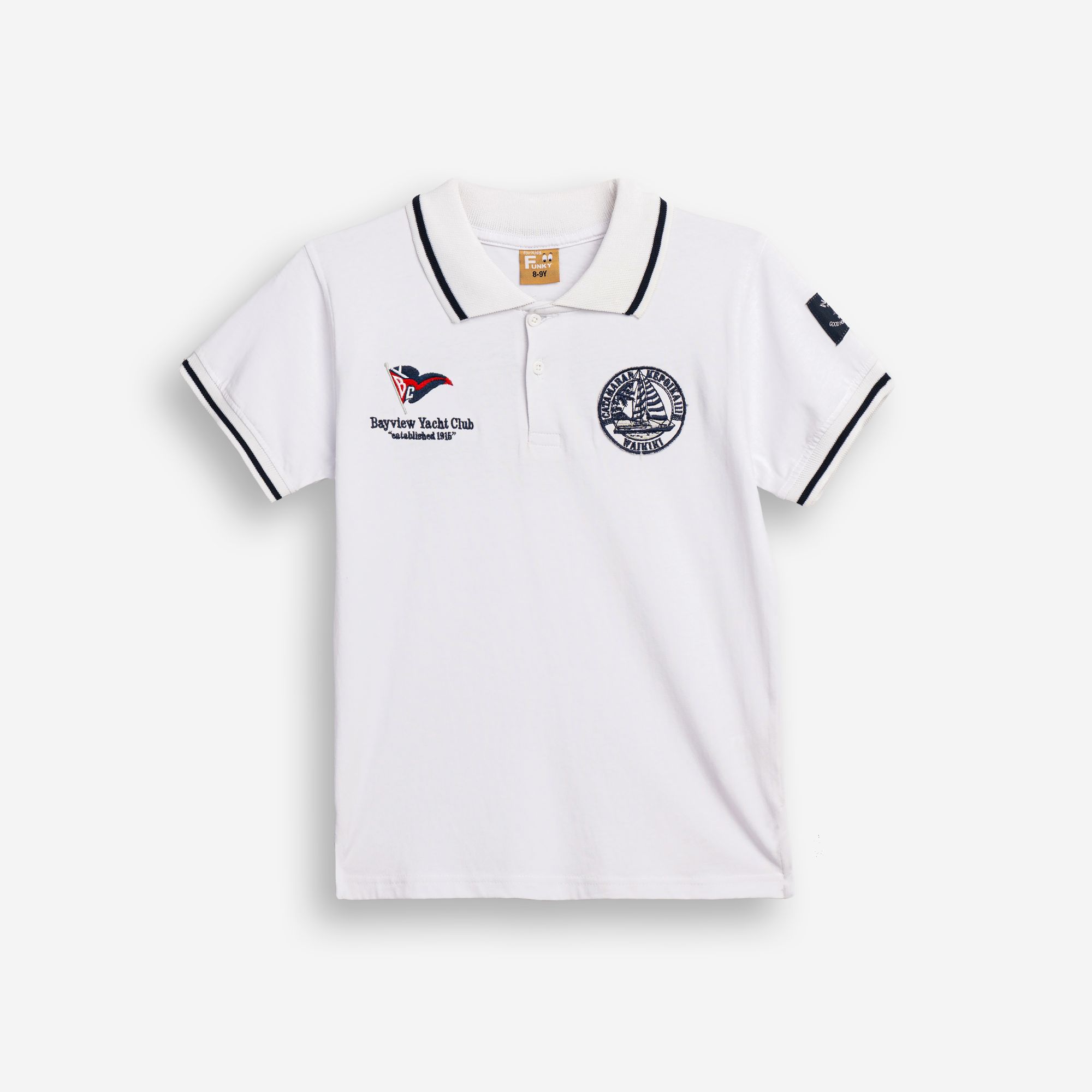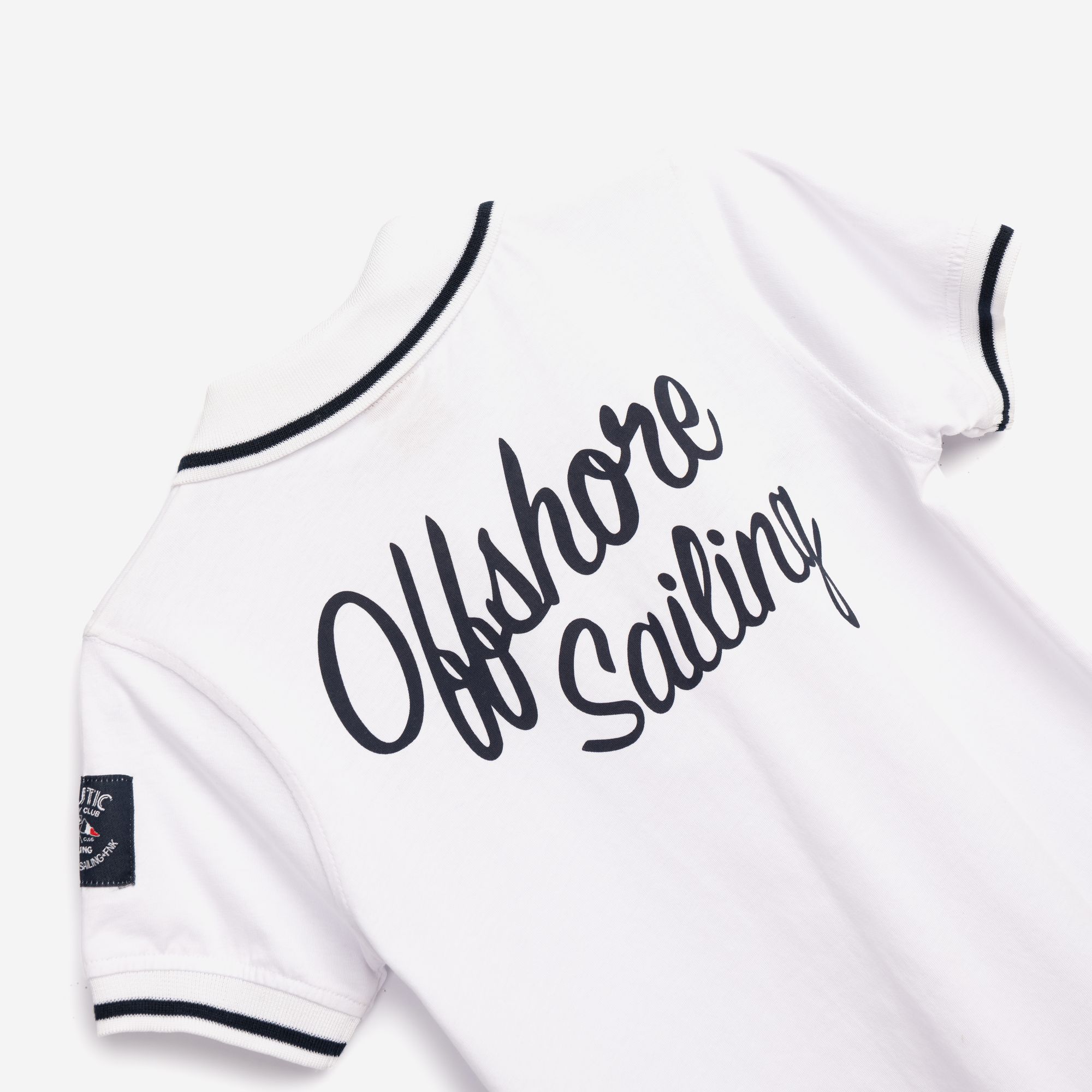 T-shirt shortsleeved polo jersey with printing (offshore sailing) in color white for boys 6-16 years