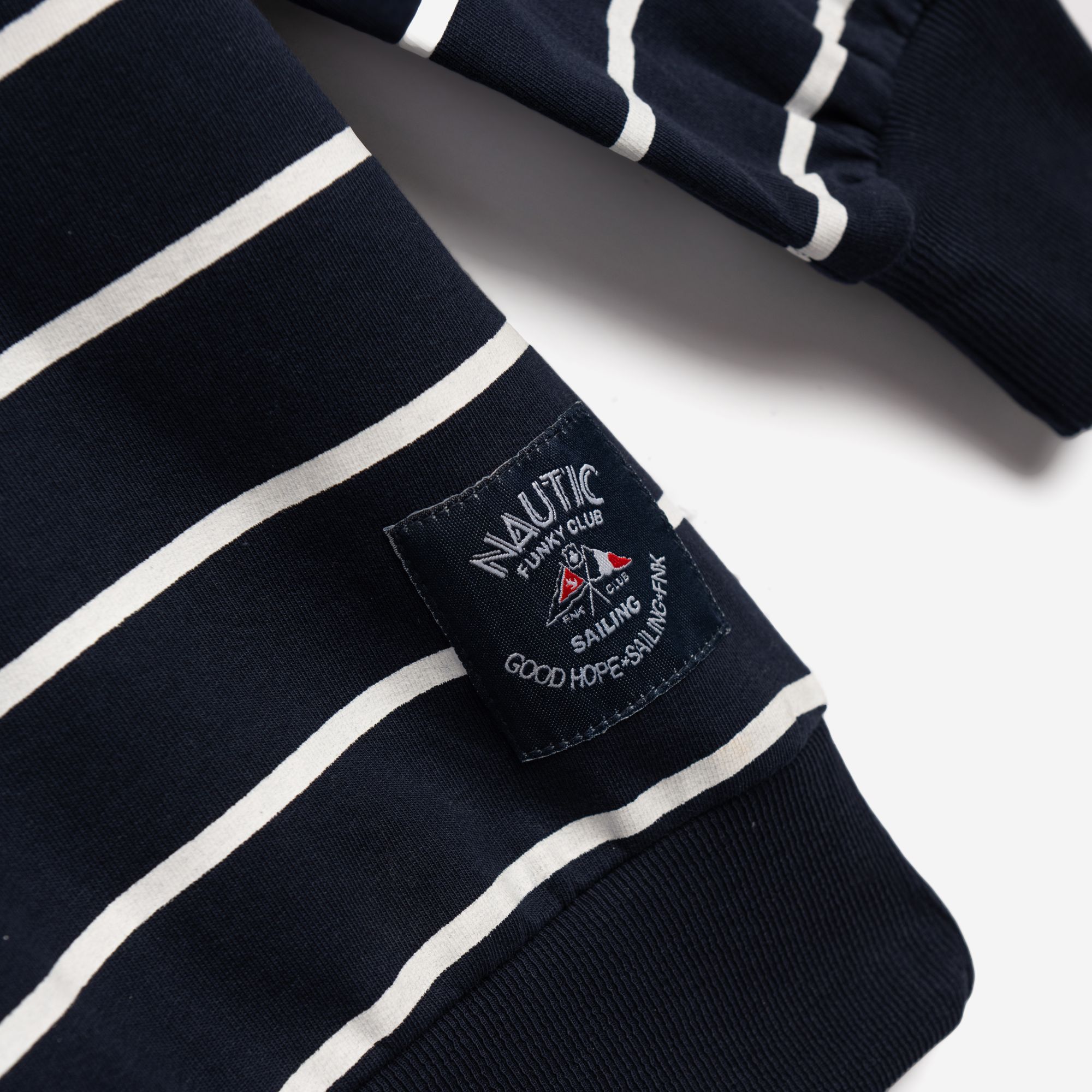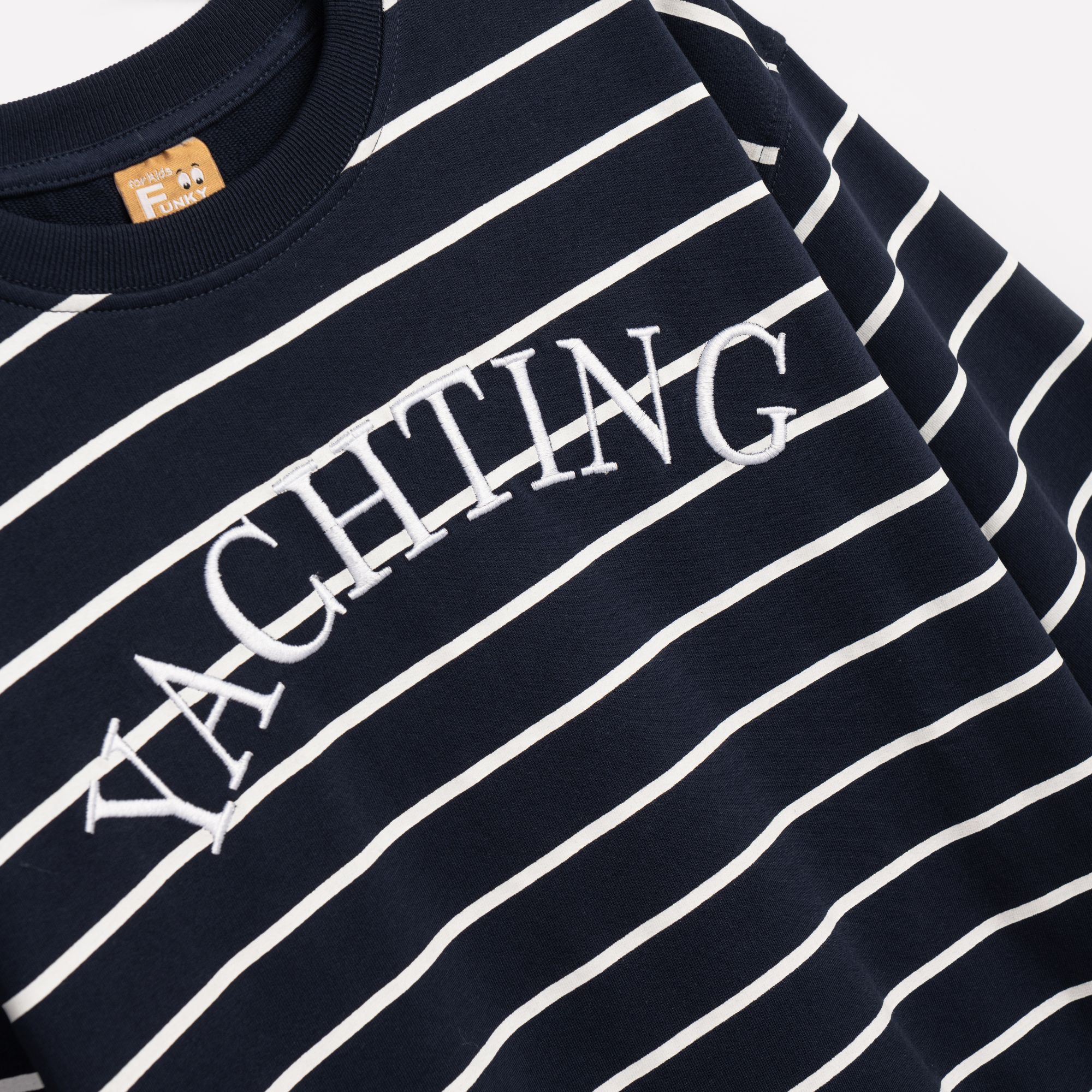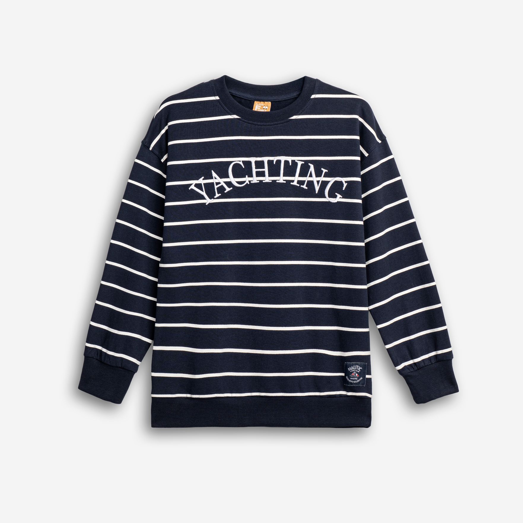 T-shirt long-sleeved fleece with printing (yachting) in color blue with stripes for boys 6-16 years