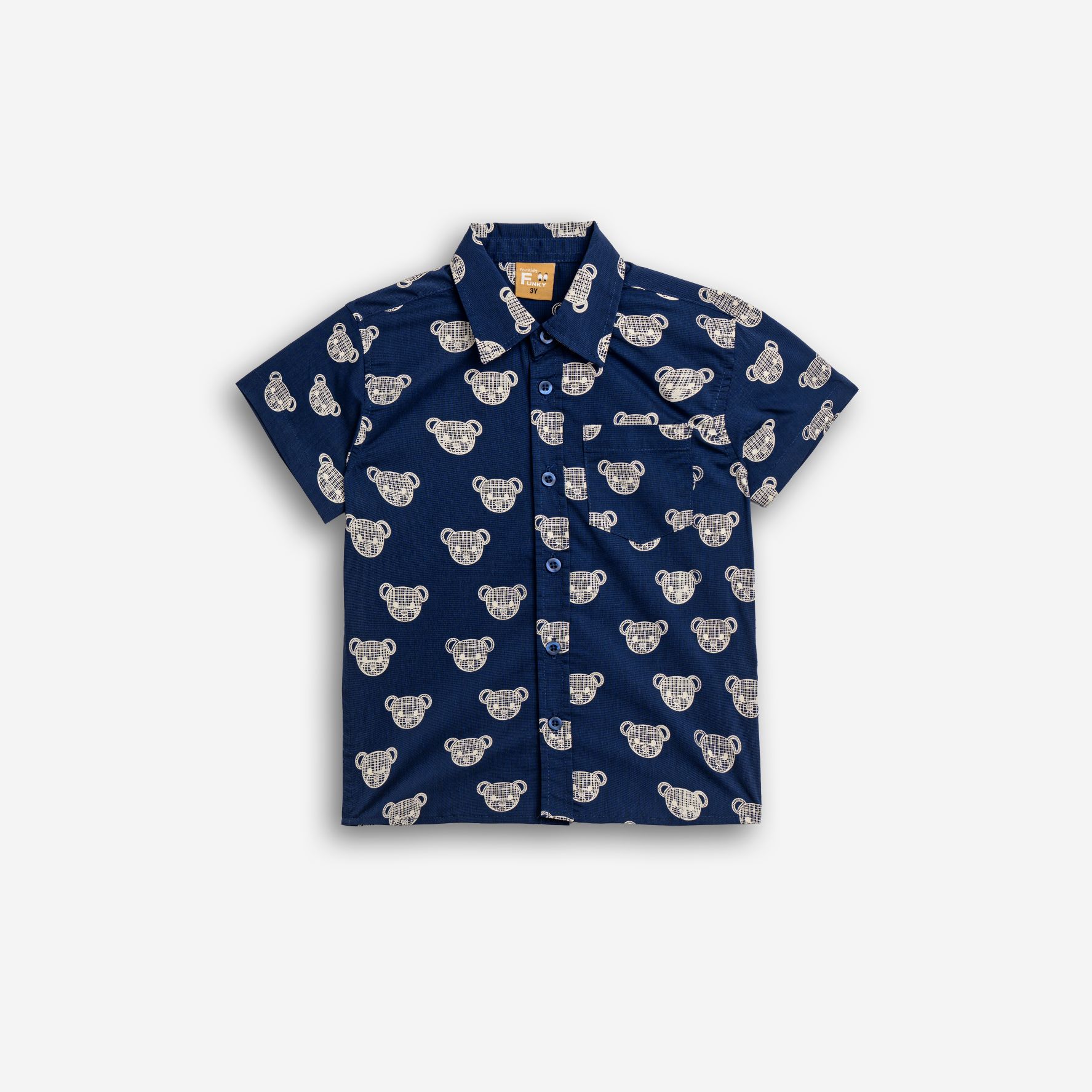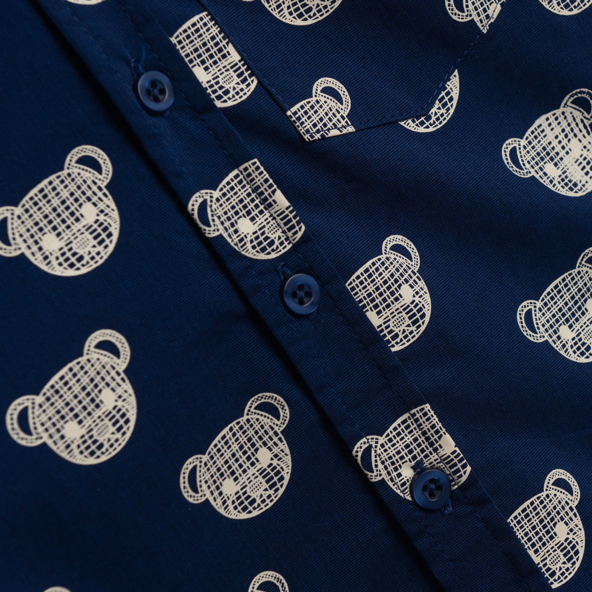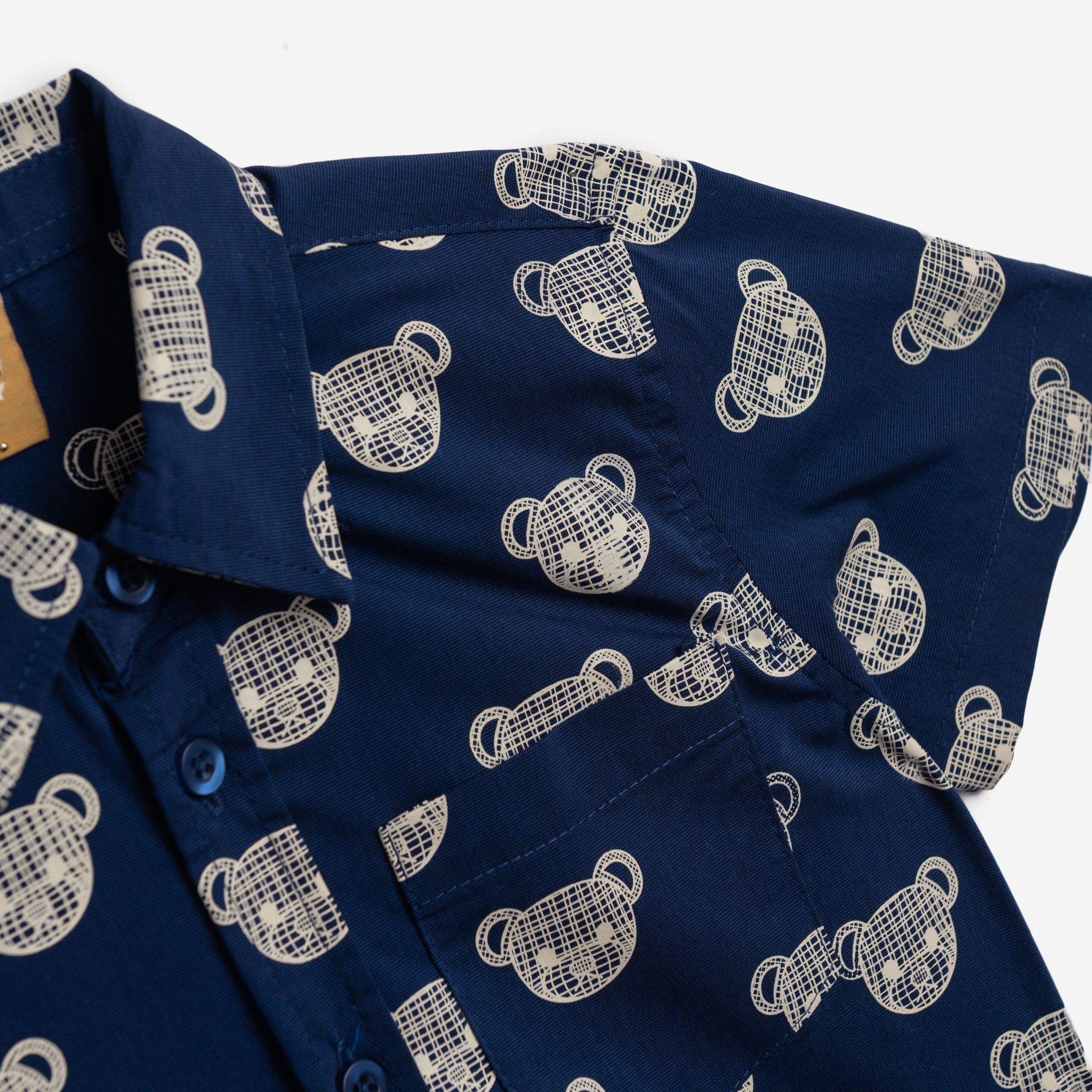 Shirt short-sleeved poplin with printing (teddy bears) allover in color indigo for boys 1-6 years
