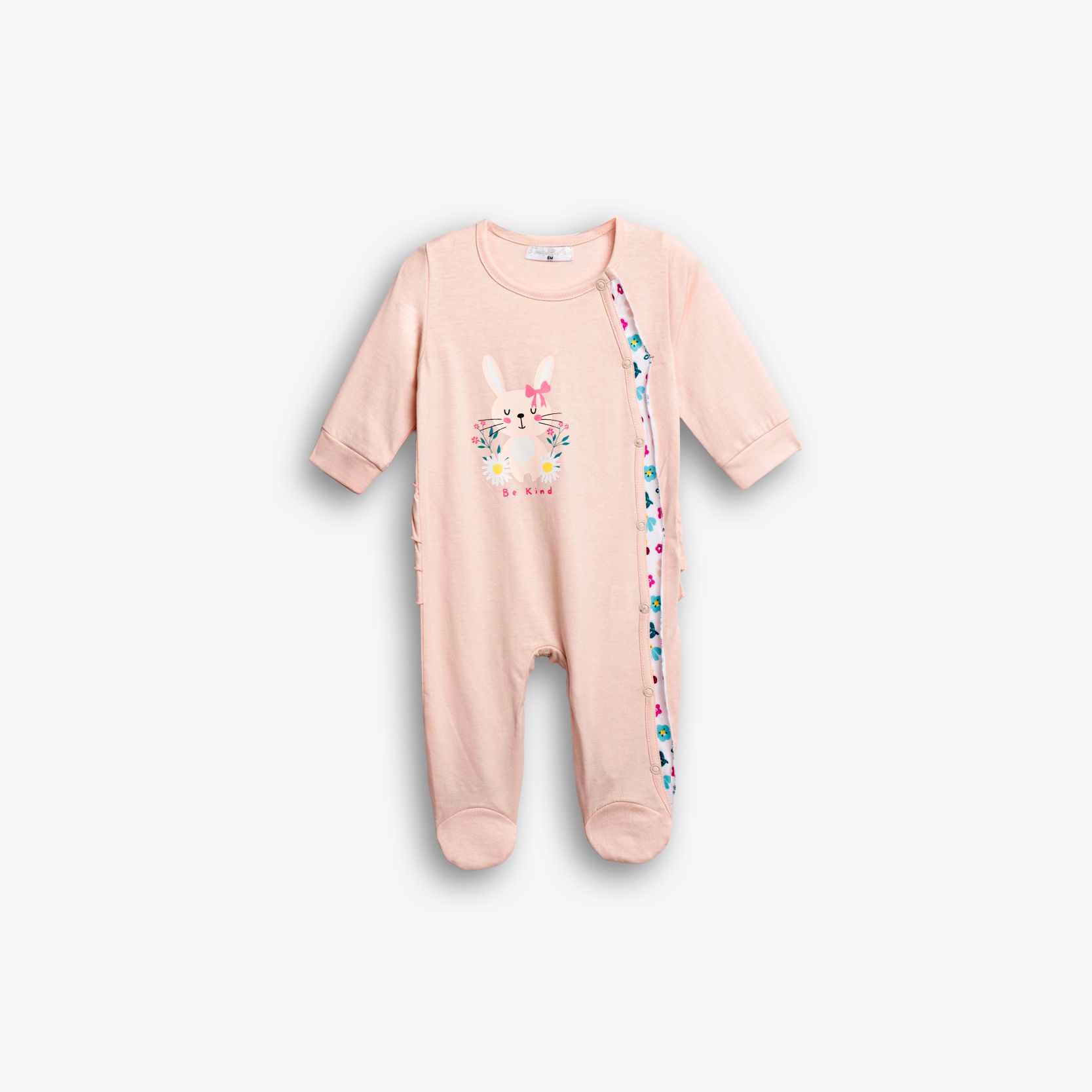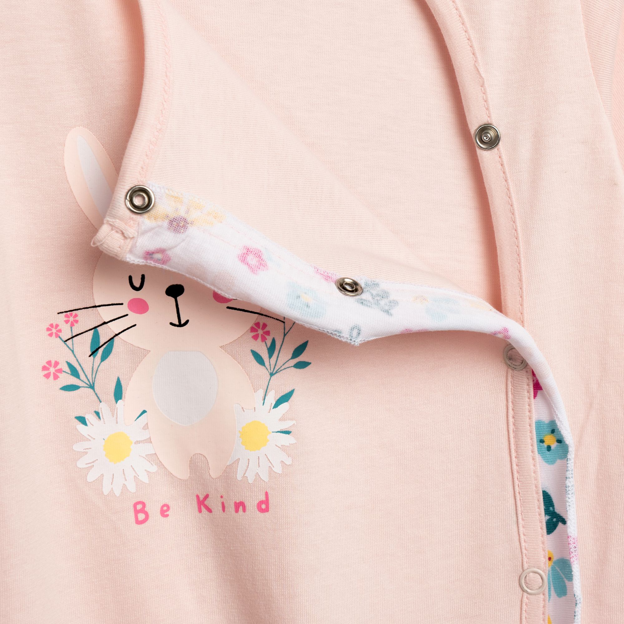 Bodysuit long-sleeved jersey with printing (bunny) in color pink-white for newborn girls
