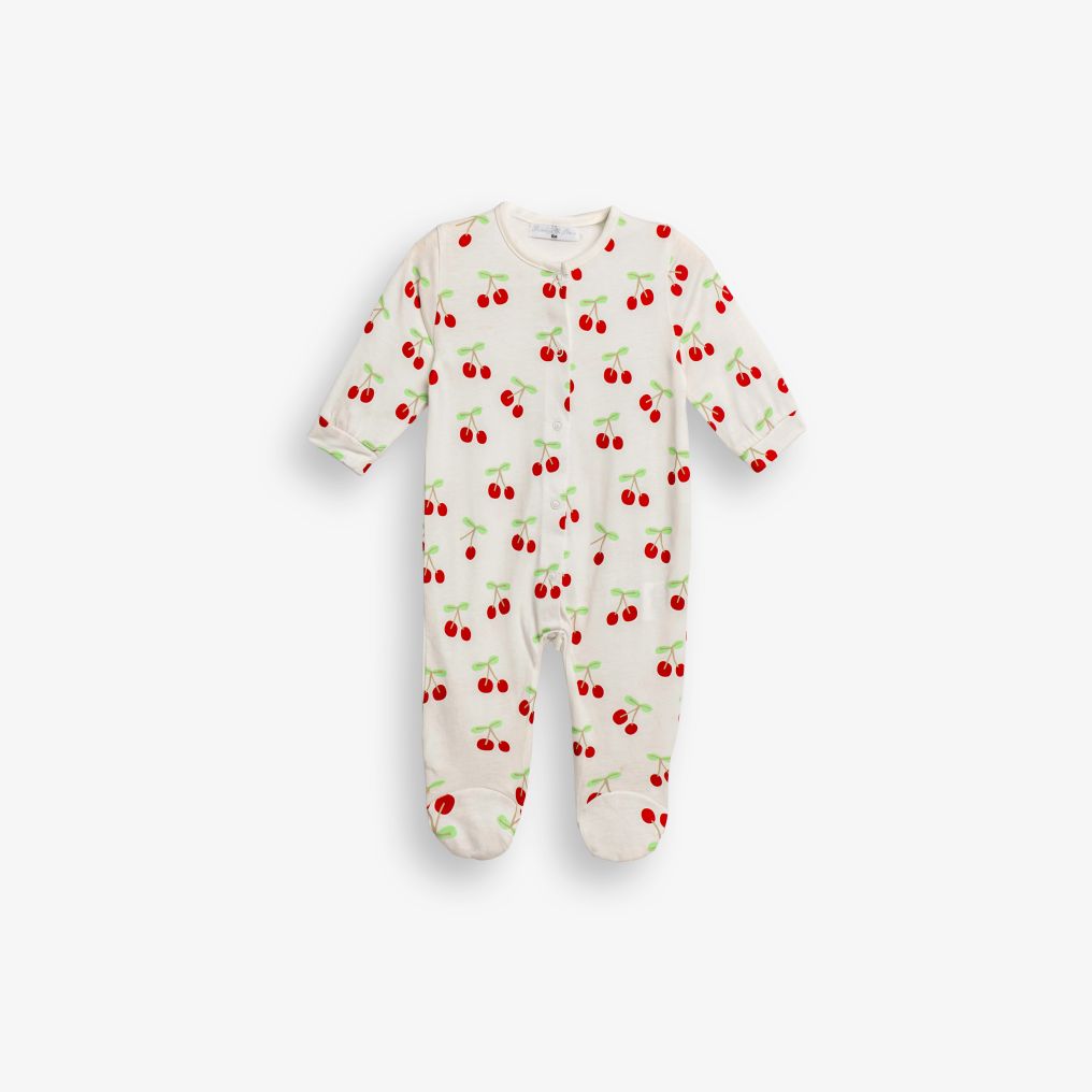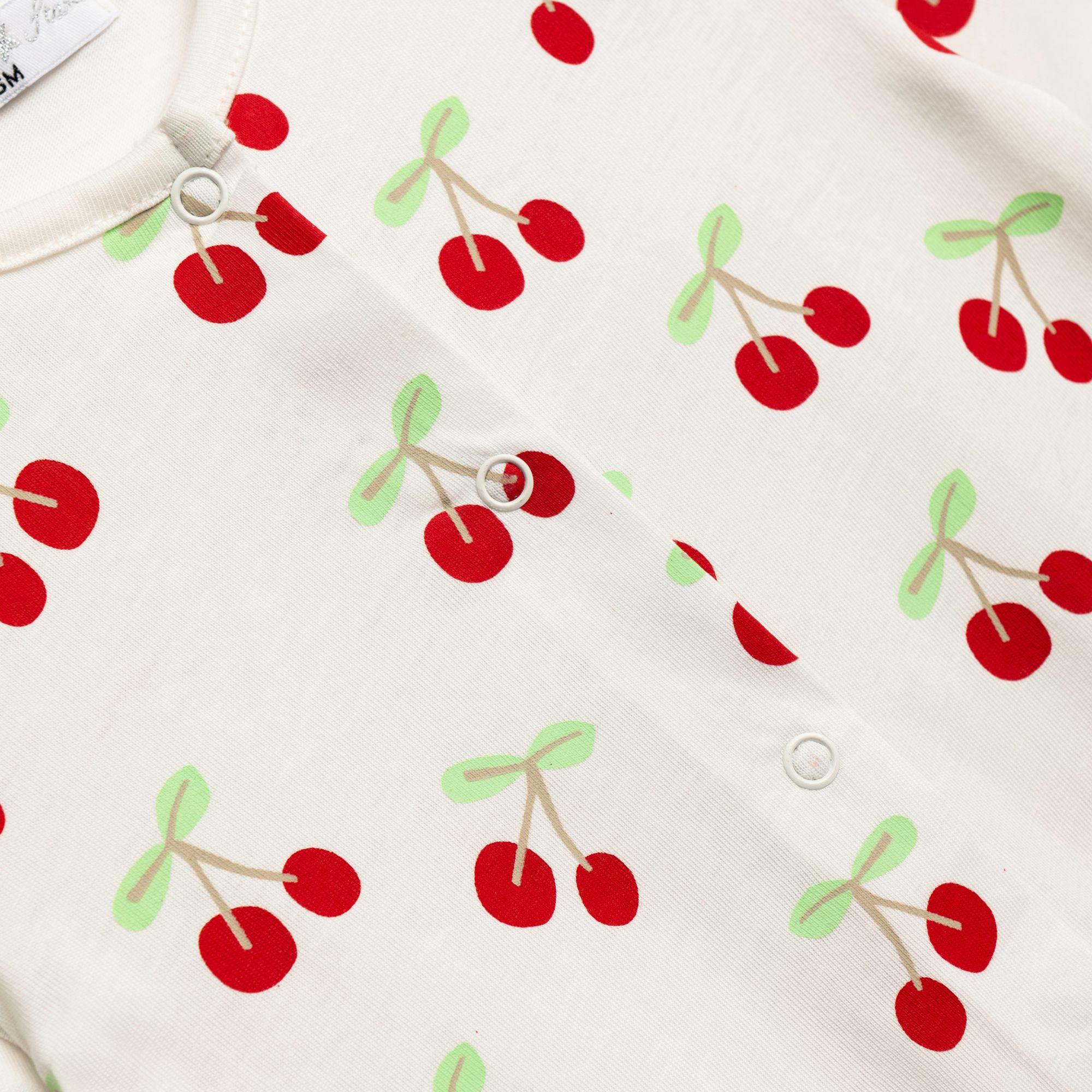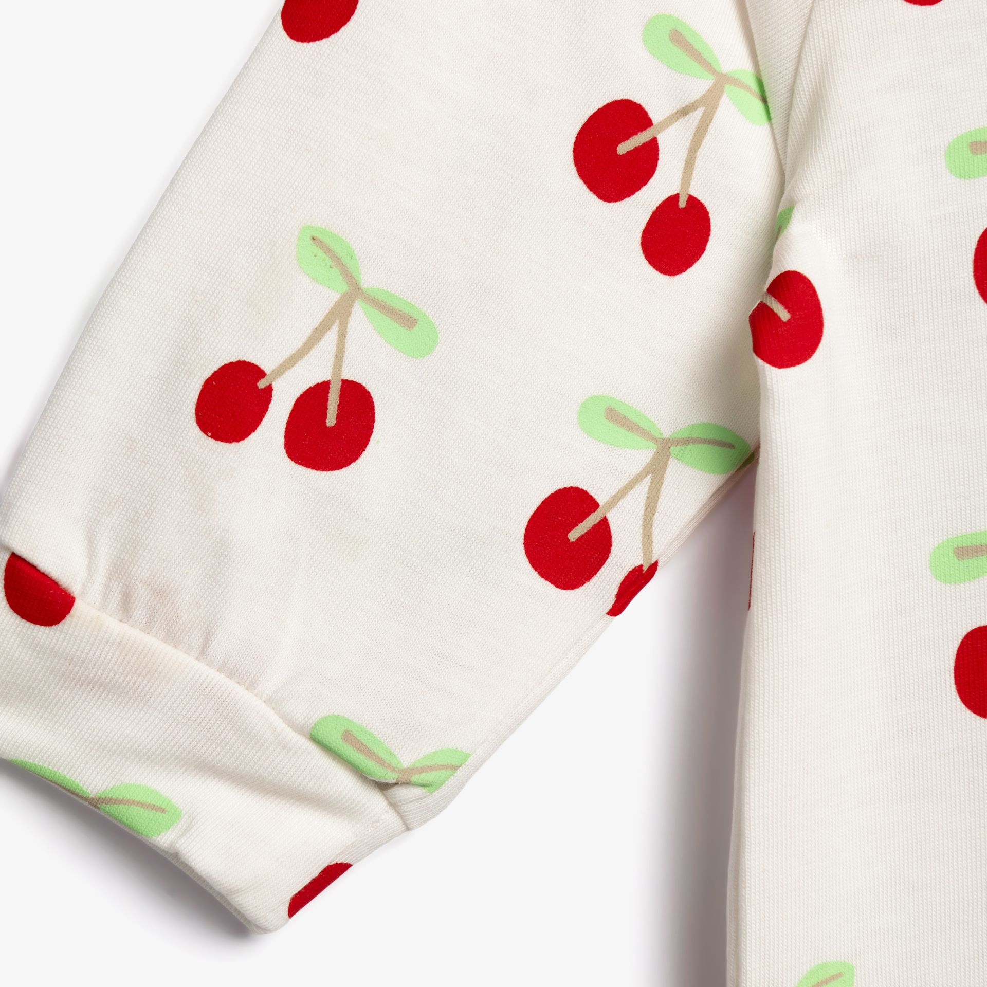 Bodysuit long-sleeved jersey and bib with printing (cherries) allover in color ecru/bright red for newborn girls