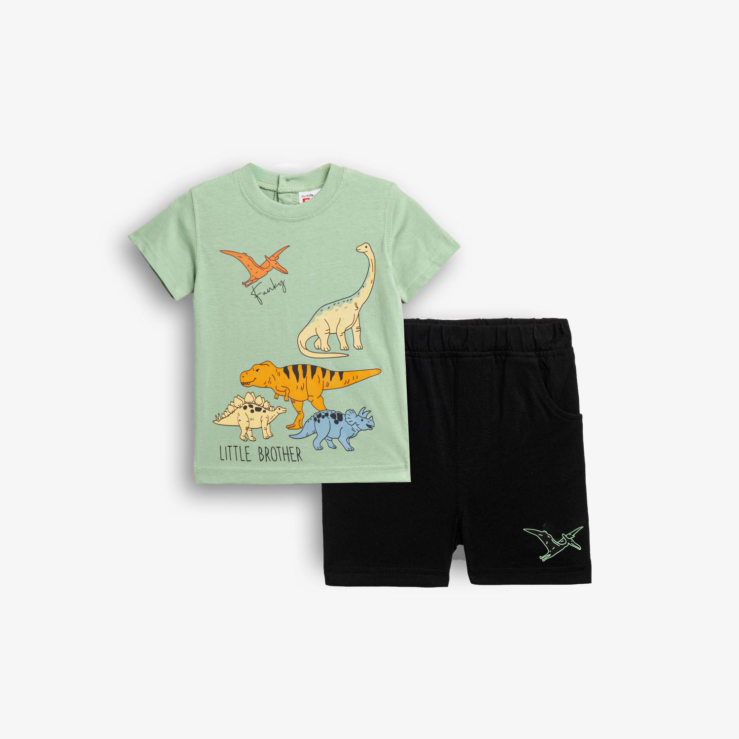 Set blouse jersey with printing (dinosaurs) and shorts with printing in color grass/black for boys months