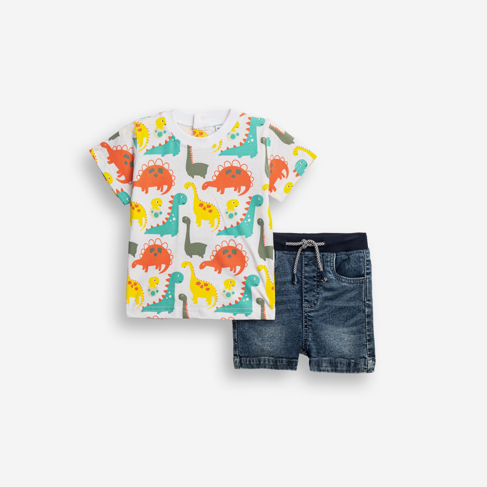 Set blouse with printing (dinosaurs) allover and corduroy fleece jean in color white/blue jean for boys months