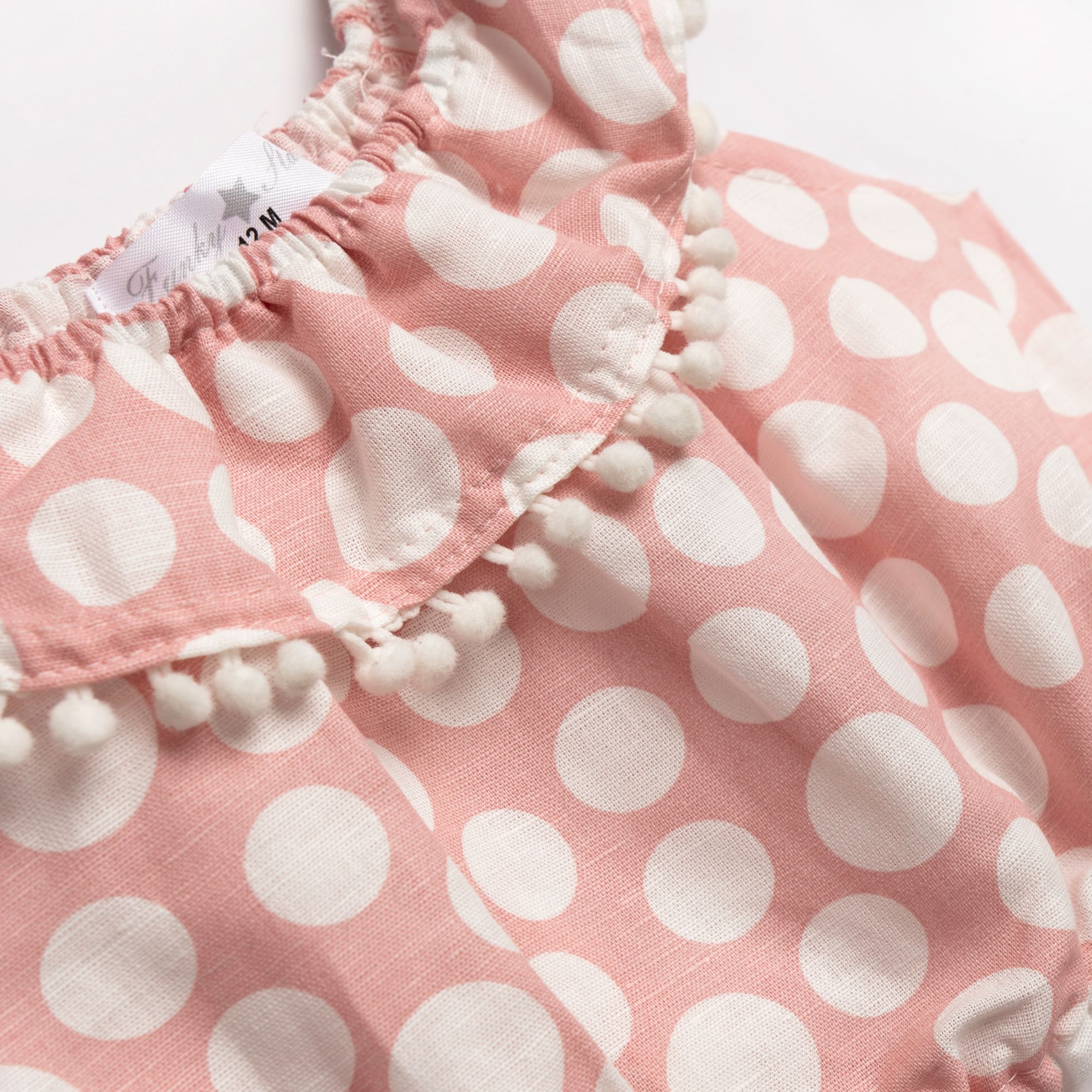 Set blouse with printing (dots) allover and shorts with printing allover and hat in color type for girls months